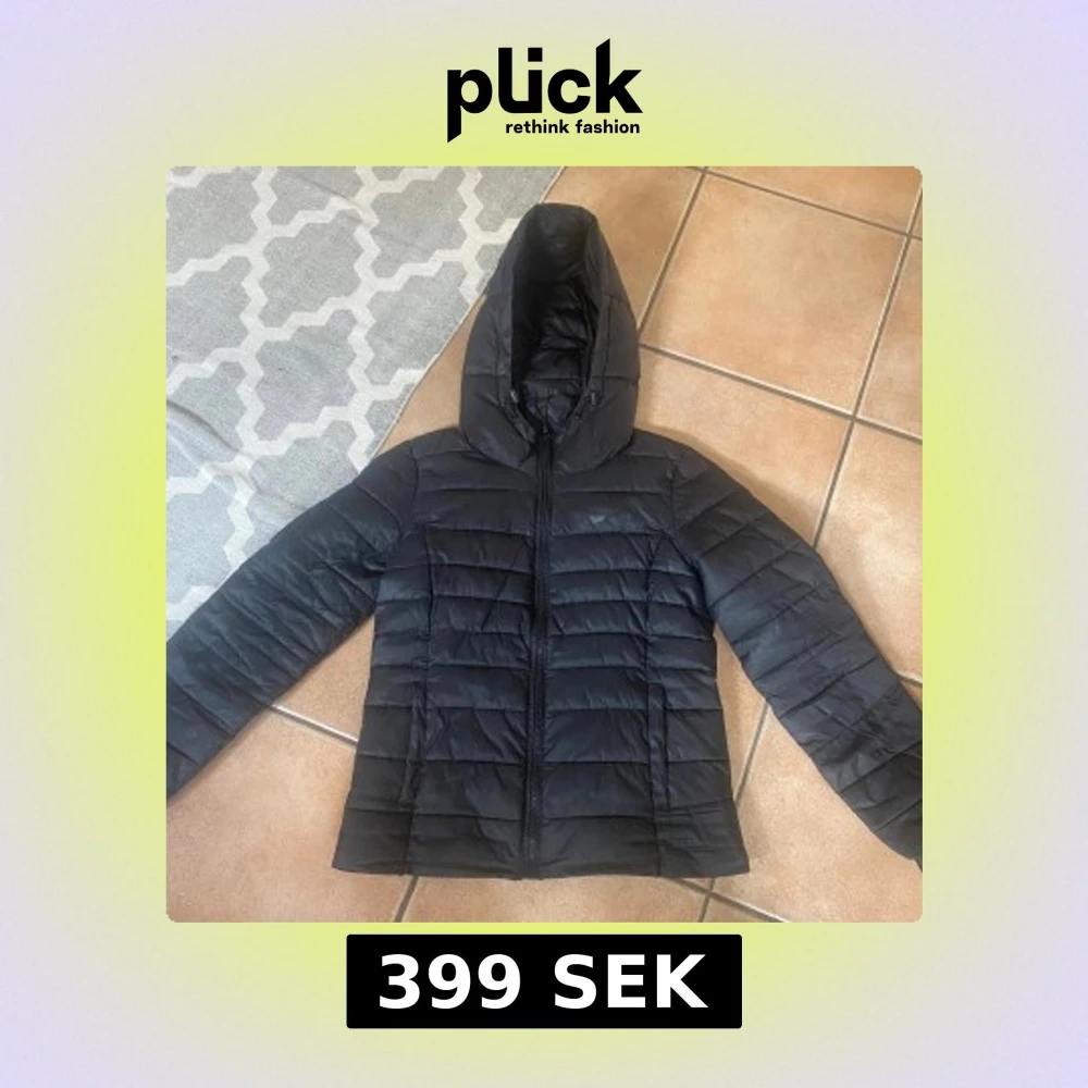Svart pufferjacka från ONLY i storlek M. Jackan har en schysst huva, horisontella sömmar och dragkedja framtill. Perfekt för kyliga dagar och enkel att matcha med allt. Materialet är syntet och jackan har en normal passform. Lite tecken på användning men går att tvättas bort, köpt förra året från zalando för 800kr.