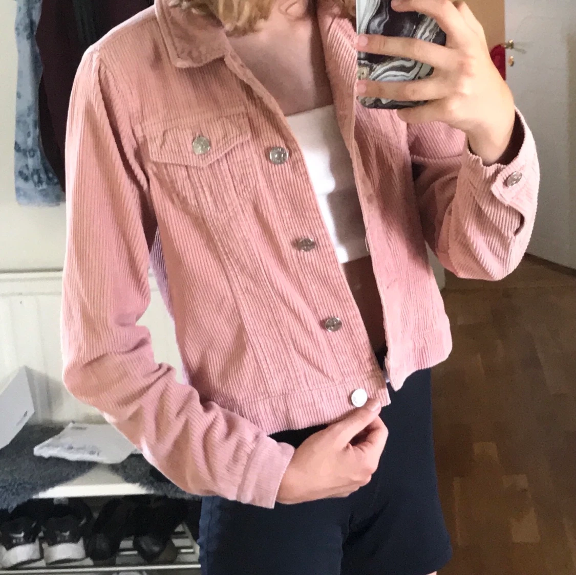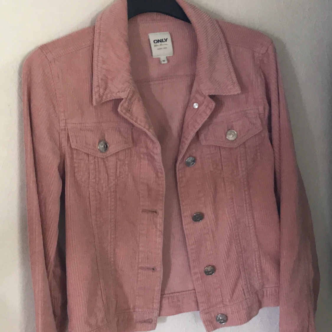 Jeansjackan är i damstorlek 34, säljs då den inte passar längre. Använd 2-3 gånger och är så gott som ny. Knäpps med knappar och har 2 små fickor. Stilren och snygg, passar perfekt på sommaren!