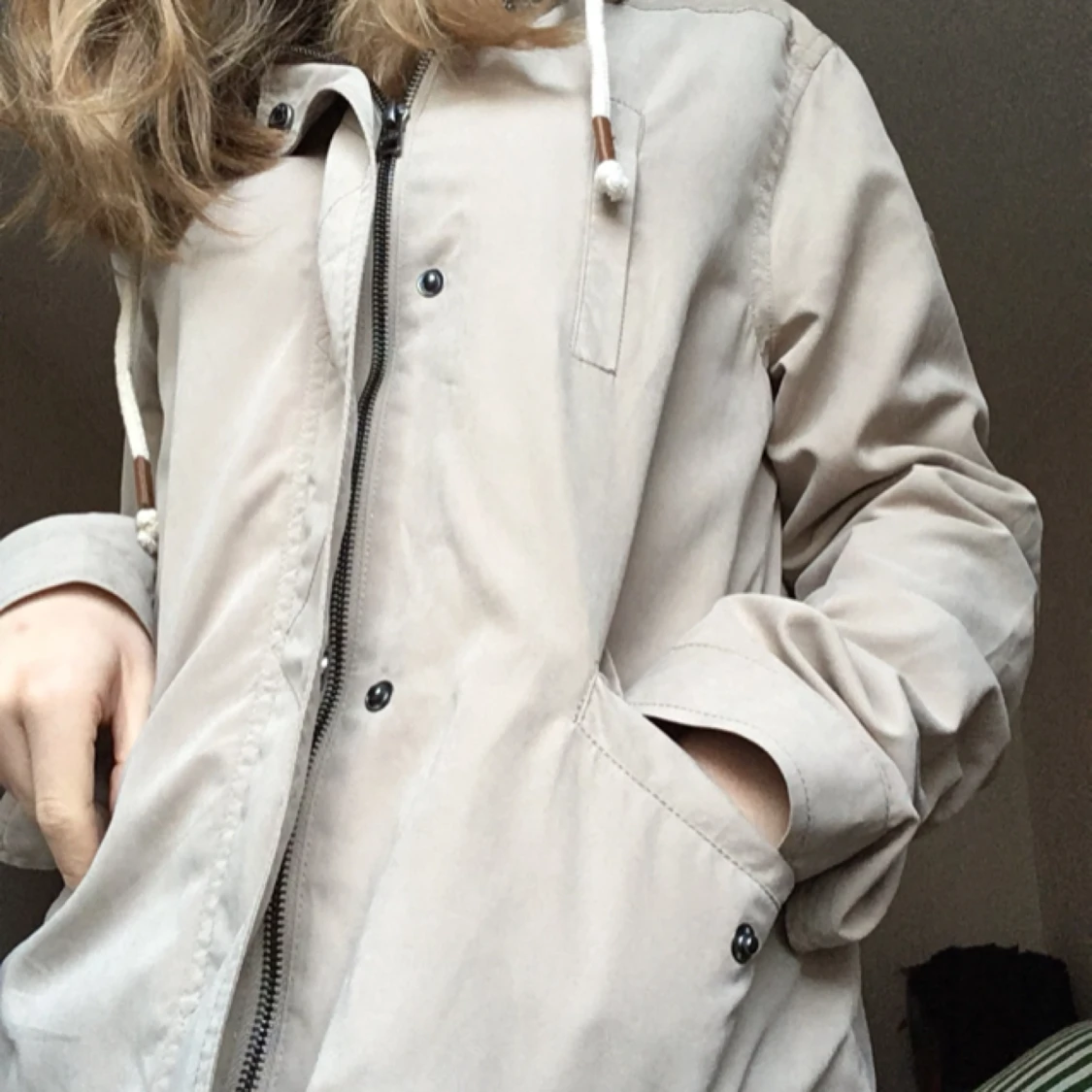 Jackan är beige och i stl S och passar perfekt nu i höst. Köpte den för bara något år sedan för ca 400 kr. Använt max 3 ggr. Köparen står för kostnad av frakt