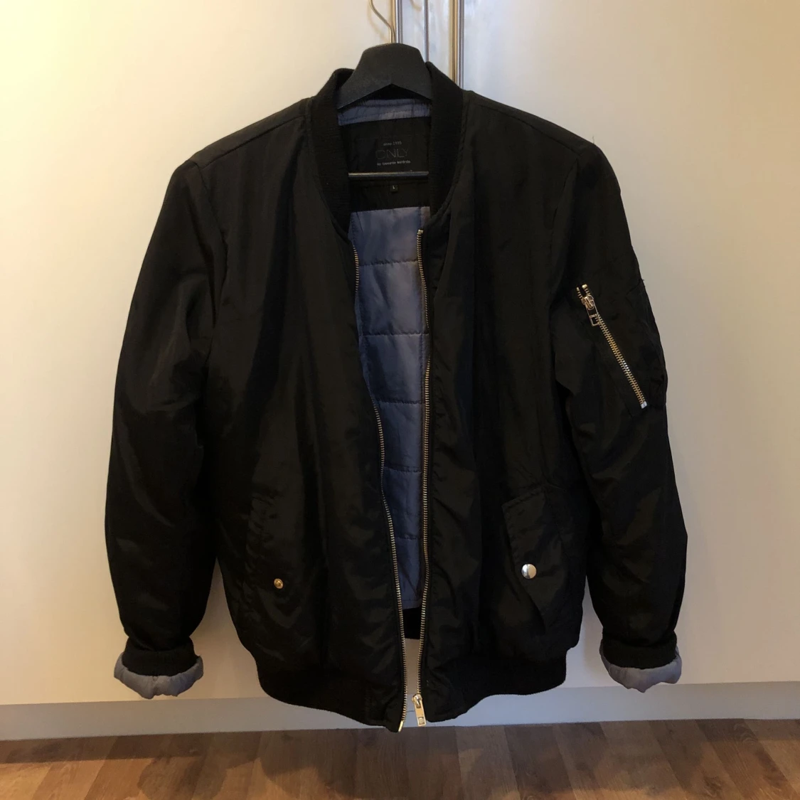 Tjockare bomberjacka i stl L från Only, passar s/m beroende på hur man vill att den ska sitta. Svart, med dragkedja och fickor🌸