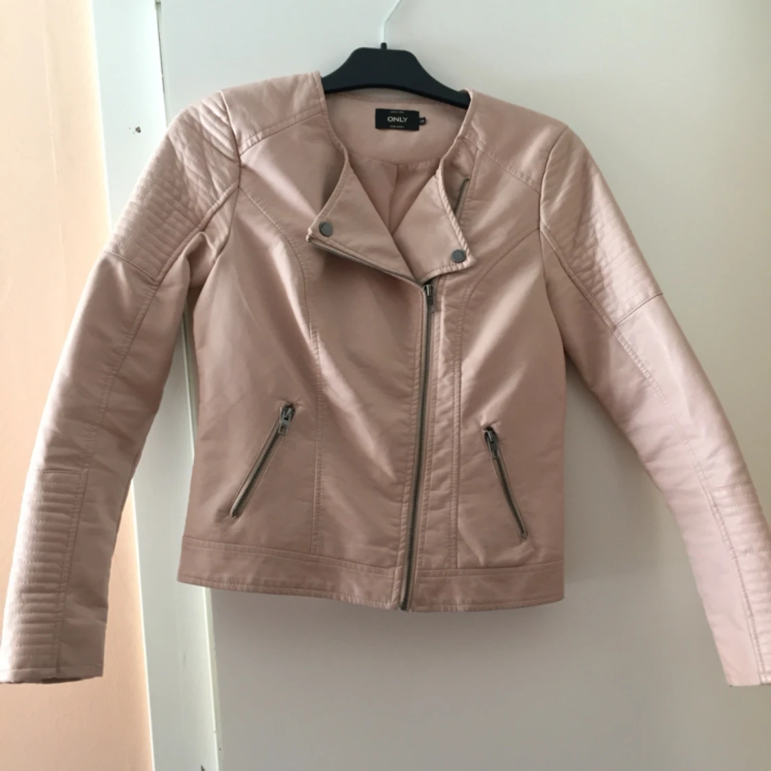 Ljusrosa skinnjacka, väldigt sparsamt använd. Kan tänka mig att gå ner i pris.