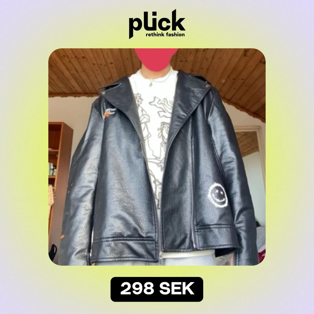Väldig cool läderjacka. Använt den aldrig. Köpt från Plick.