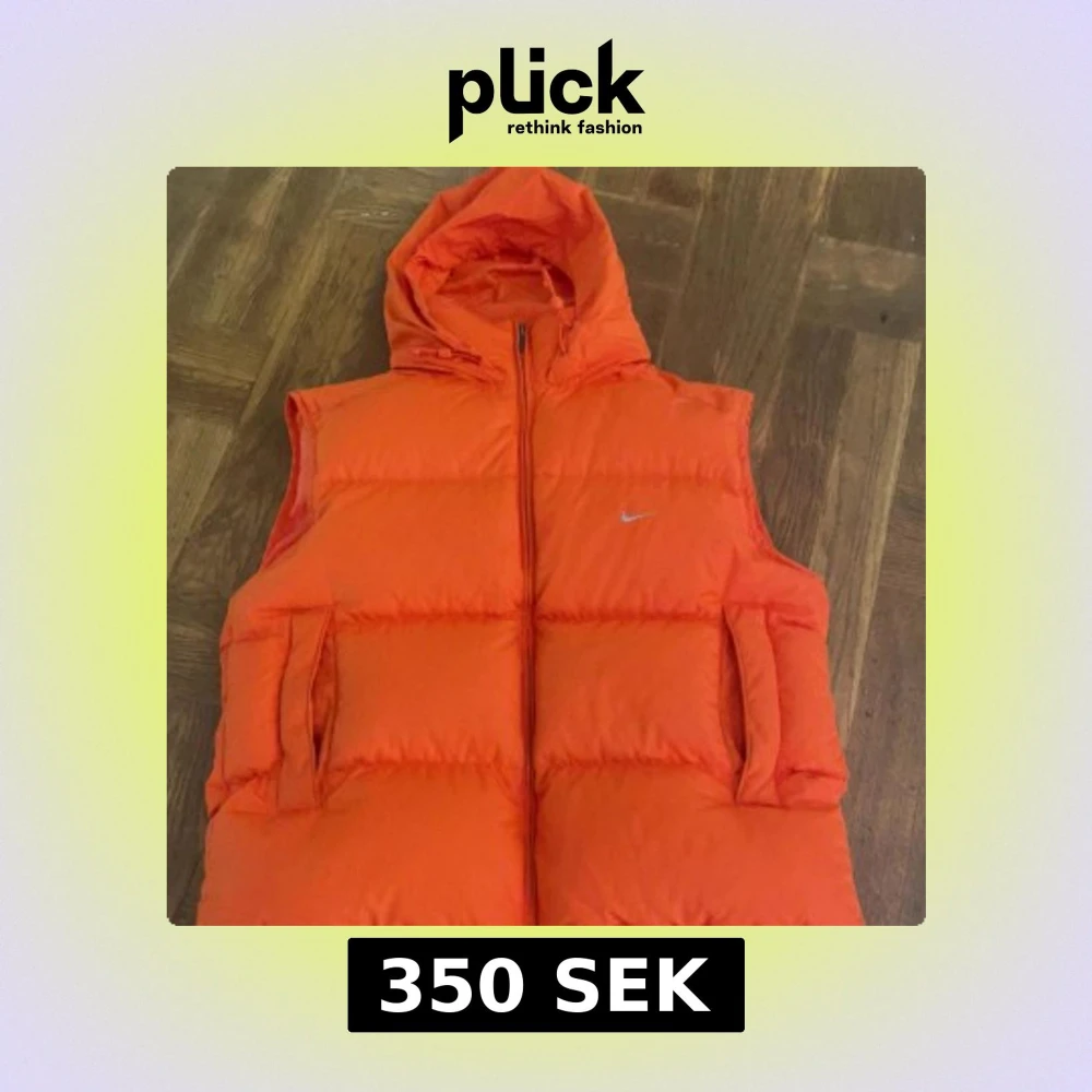 Säljer en orange dunväst från Nike med huva och dragkedja framtill. Västen har två fickor på sidorna och en innerficka med dragkedja. Perfekt för lager-på-lager och sportig stil.