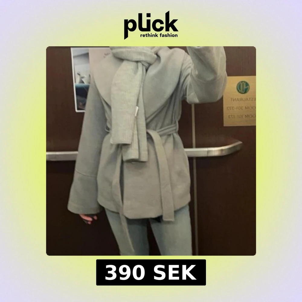 Säljer en stilren ljusgrå kappa med bälte i midjan och bred krage. Jackan har lång ärm och en rak, fin passform. Perfekt för dig som vill ha en enkel men snygg look. 1,5 år gammal och har lite noppor men annars fin och hel💕
