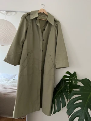Fin och oförstörbar trenchcoat från ett svenskt företag som inte längre är aktivt. Köpt i Sundsvall. Fint kvalité och i perfekt skick. Färgen skiftar mellan beige och grönt, beroende på ljus. Säljs pga trång garderob. 250 kr (inkluderar frakt).