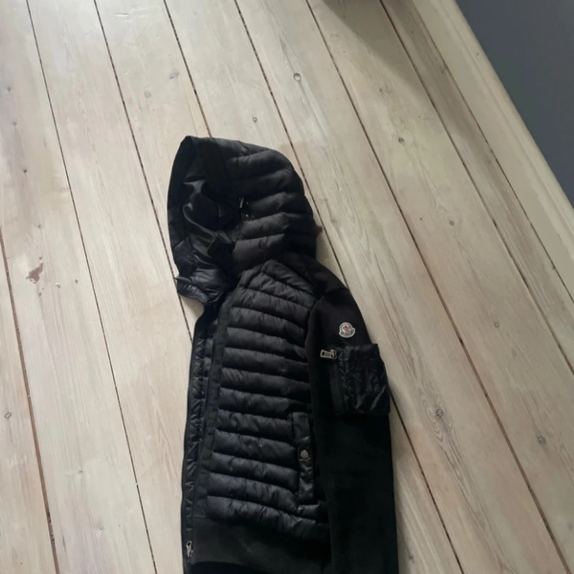 Säljer en svart pufferjacka från Moncler med huva och dragkedja. Jackan har en quiltad design, ficka med dragkedja på ärmen och klassisk Moncler-logga. Perfekt för alla stilar. Den har inga skador eller sånt skulle säga att den är i ny skick