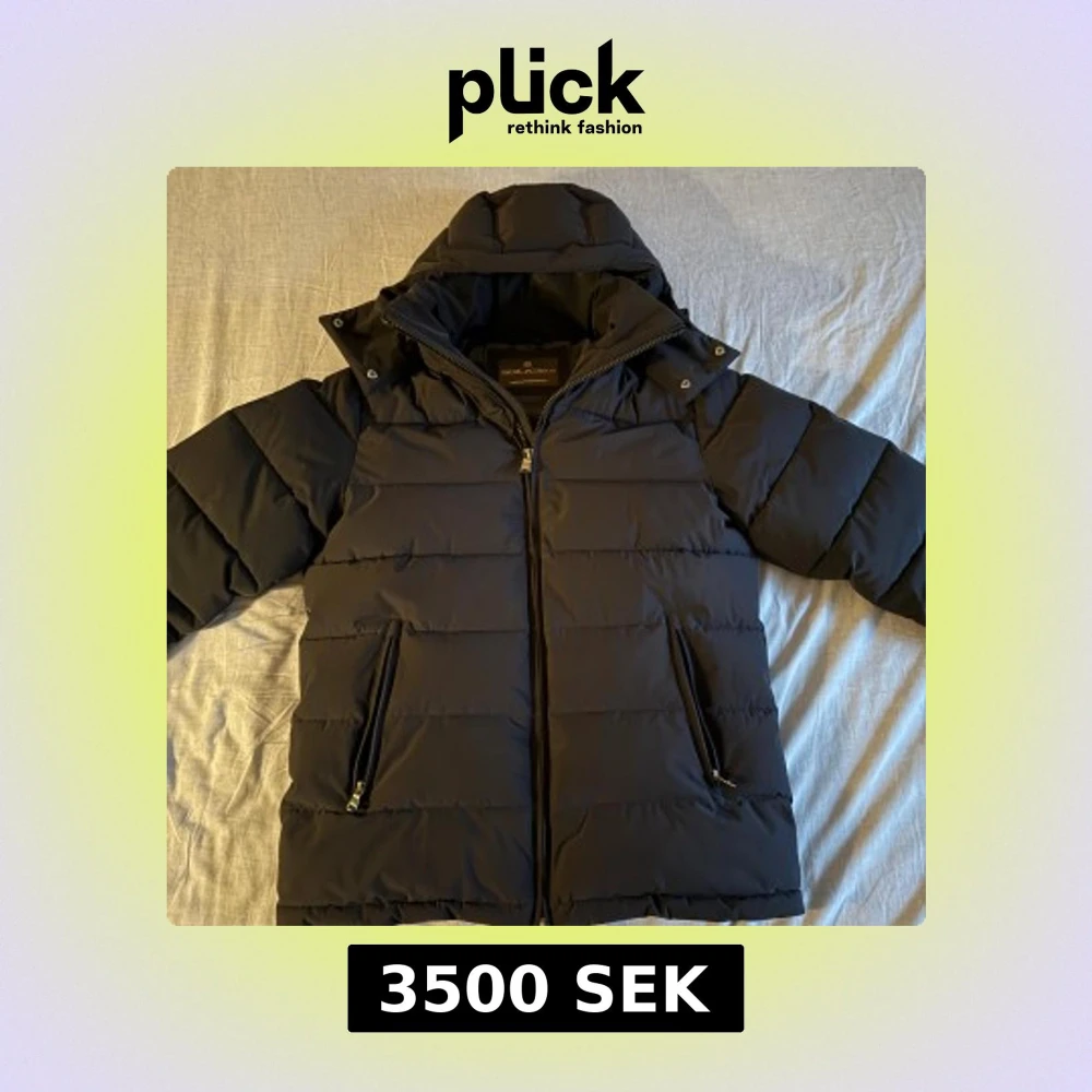 Säljer en helt ny marinblå pufferjacka från Oscar Jacobson med huva och dragkedja framtill. Jackan har två sidofickor med dragkedja och är quiltad i breda horisontella sektioner. Insidan är fodrad med blankt syntetmaterial och jackan har en clean, modern look. Storlek 46 vilket är detsamma som storlek S. Köpte för 4500 kr. Säljer för 3500 kr. Köpt på Collection of Brands. Kan gå ner i pris vid snabb affär