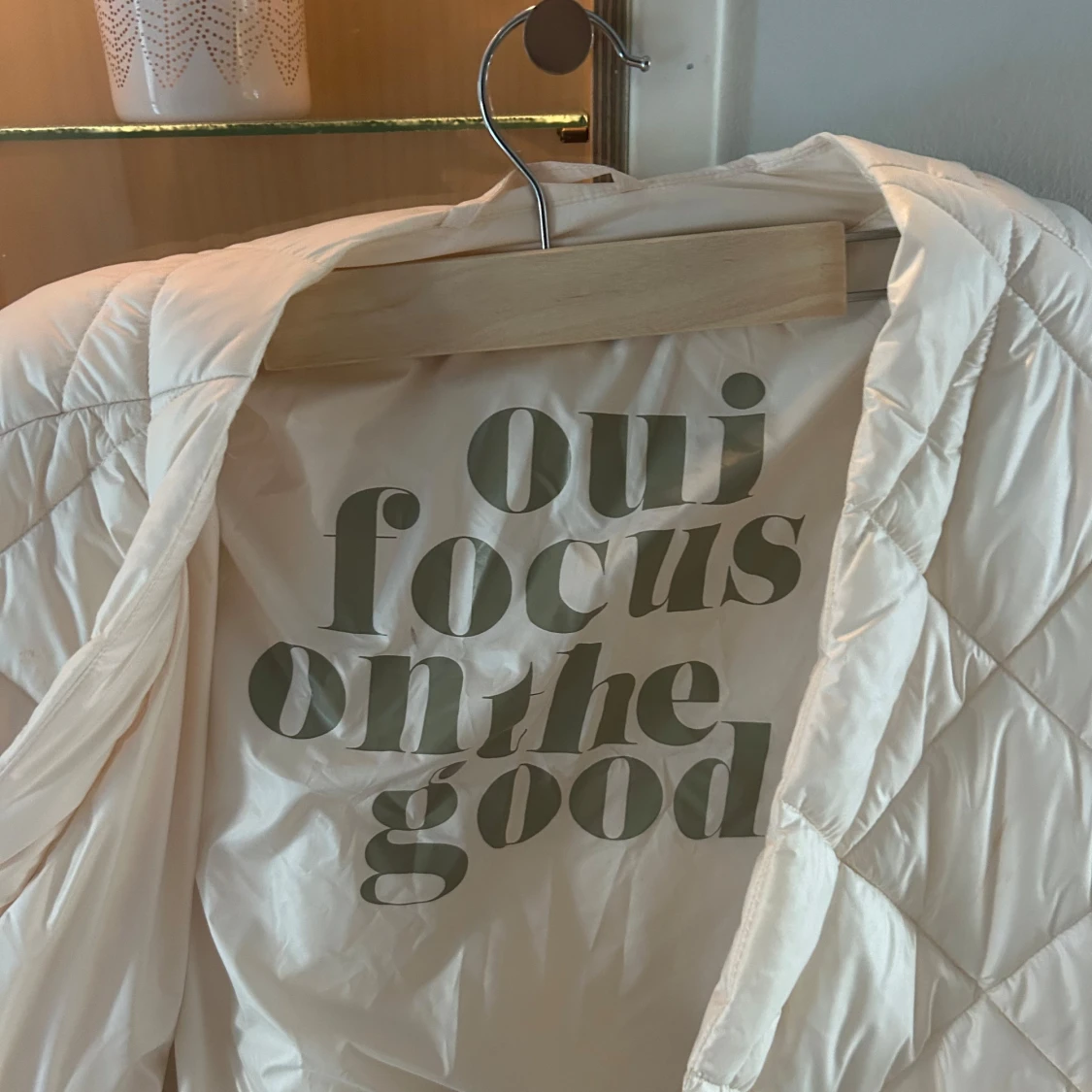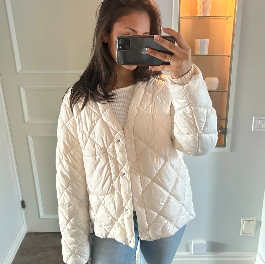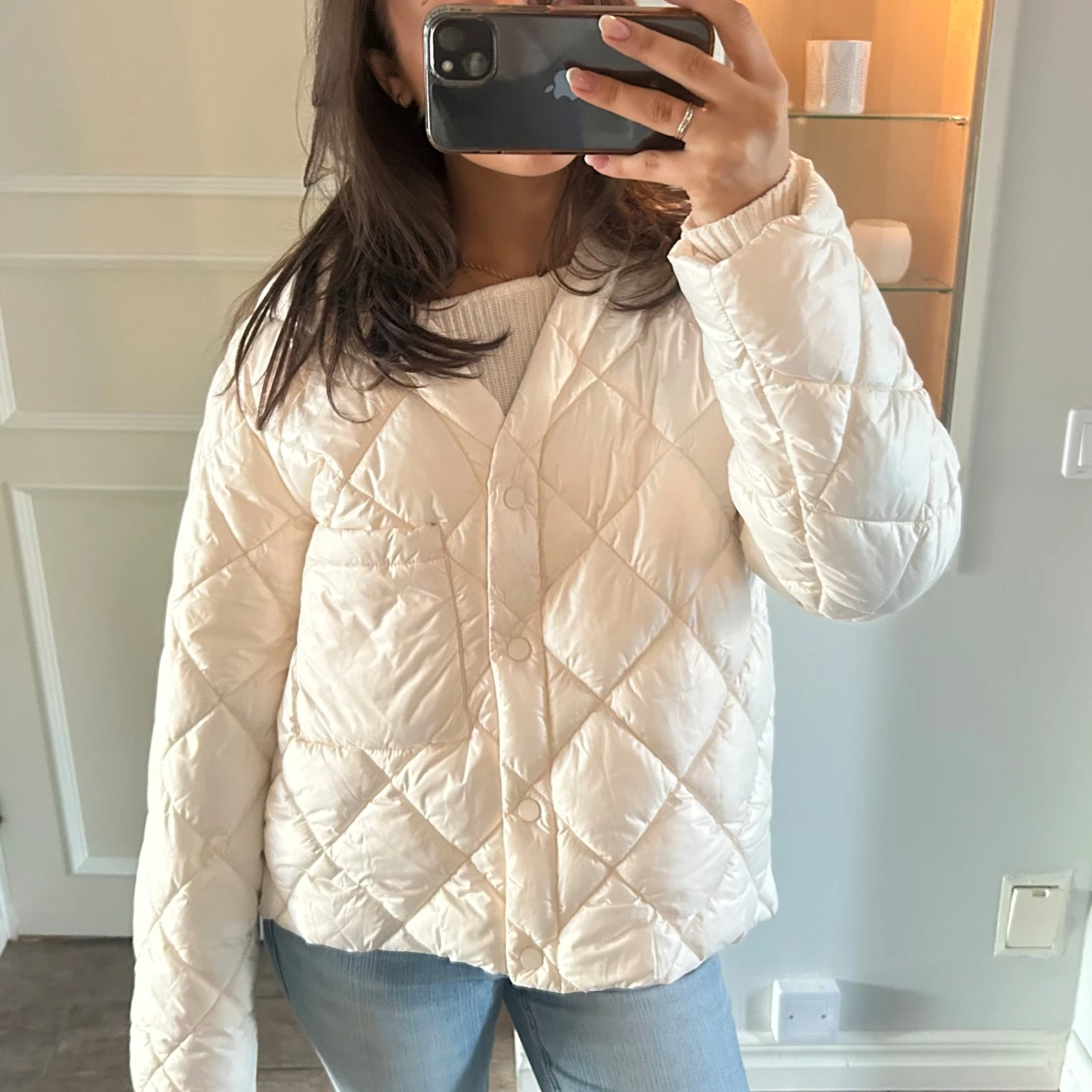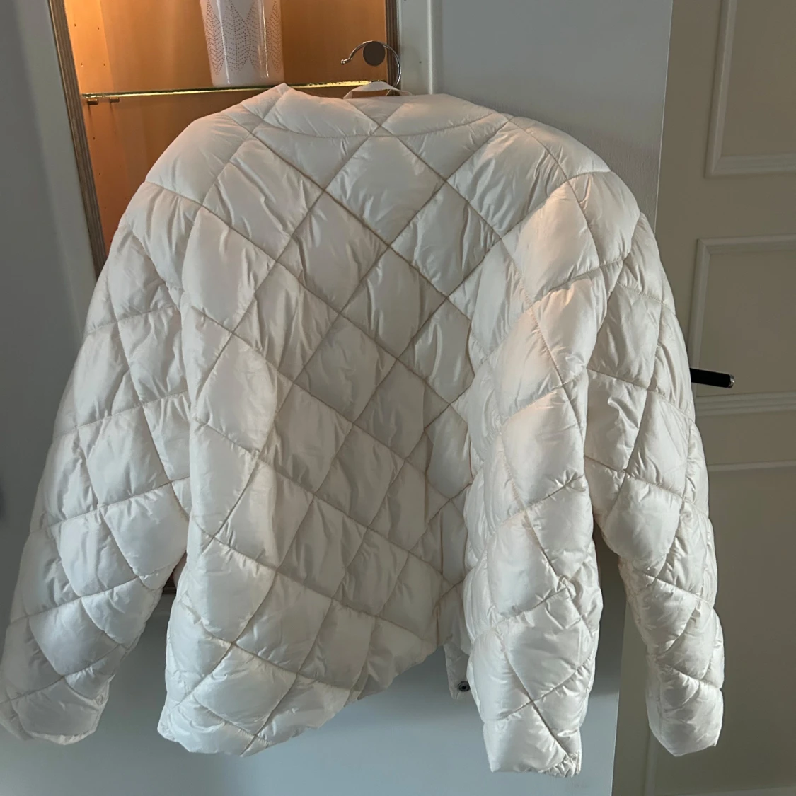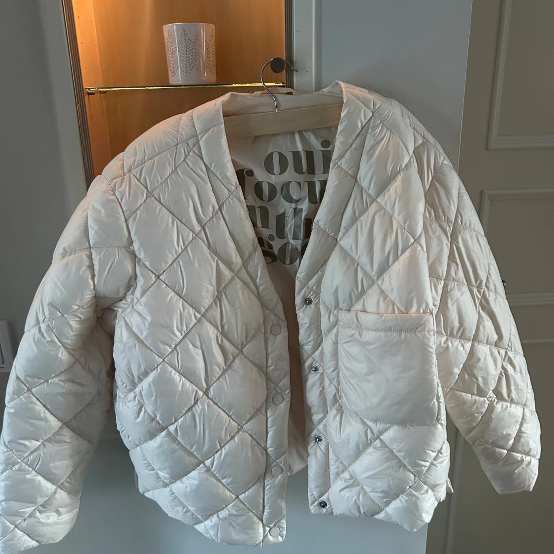 Vit/krämvit höst/vårjacka köpt på Åhléns i Stockholm i sommar men aldrig använd på grund av att den blev för stor till vintern. Nypris 2999.