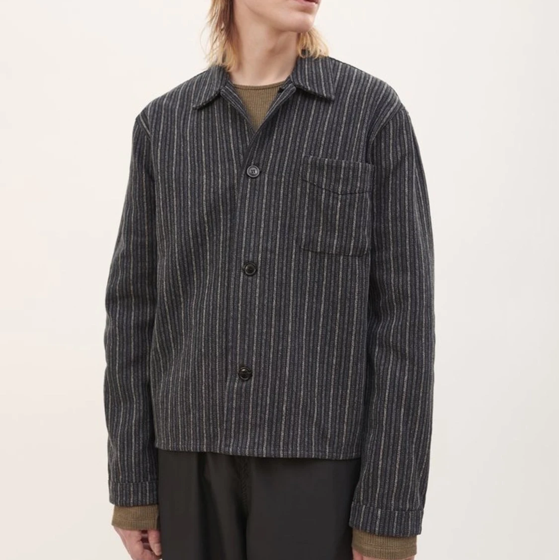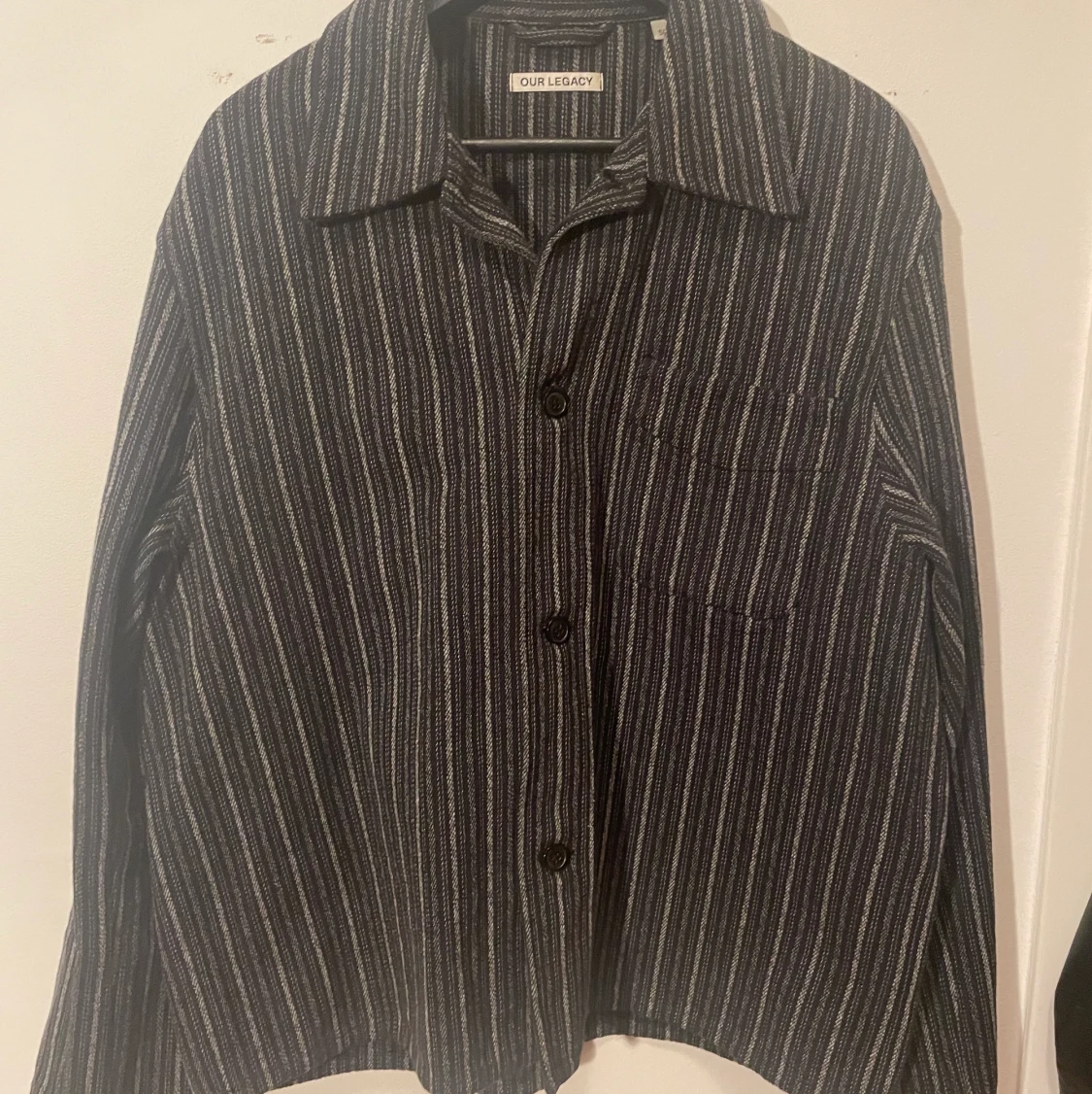 Grå randig vår/sommar jacka från our legacy i jättebra skick. Storlek 50, men skulle säga att den sitter lite mindre.
