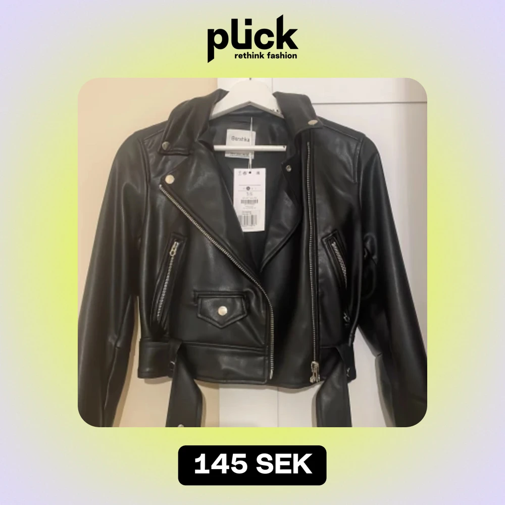 Hej! Säljer min skinnjacka som jag aldrig har använt pga liten storlek. Lappen är på fortfarande och är i storleken S. Kontakta mig gärna vid intresse.🌸 (Inte jag på andra bilden)