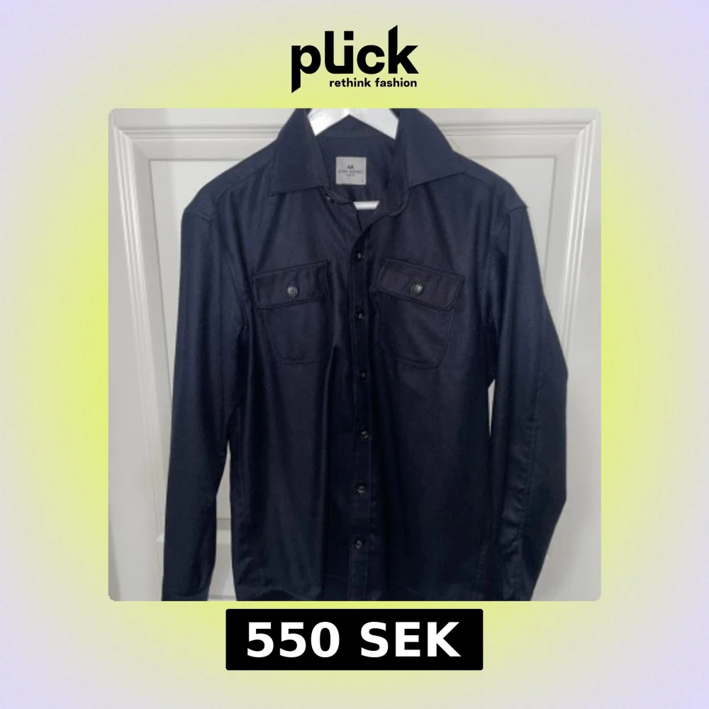 En marinblå John henric overshirt i ull, bra skick. Perfekt nu inför vår o sommar. Tveka inte på att höra av er för fler bilder eller frågor!