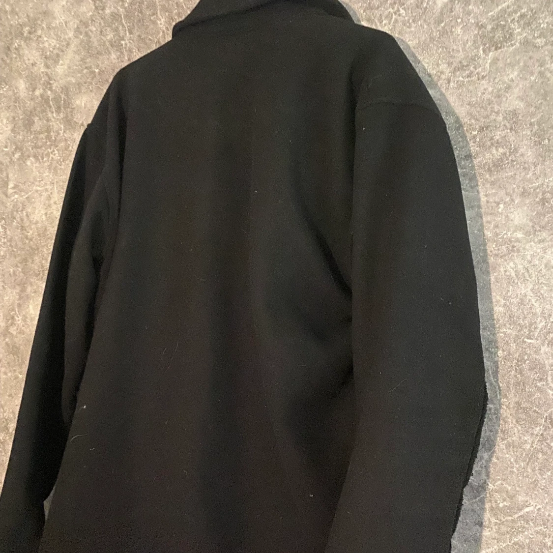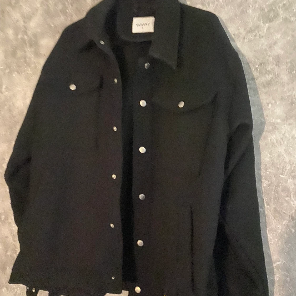 Hej, Säljer en snygg Svart Overshirt i skönt material. Köpte den i höstas, användt några gånger. Obs! Knappen längst ner är lite dålig.