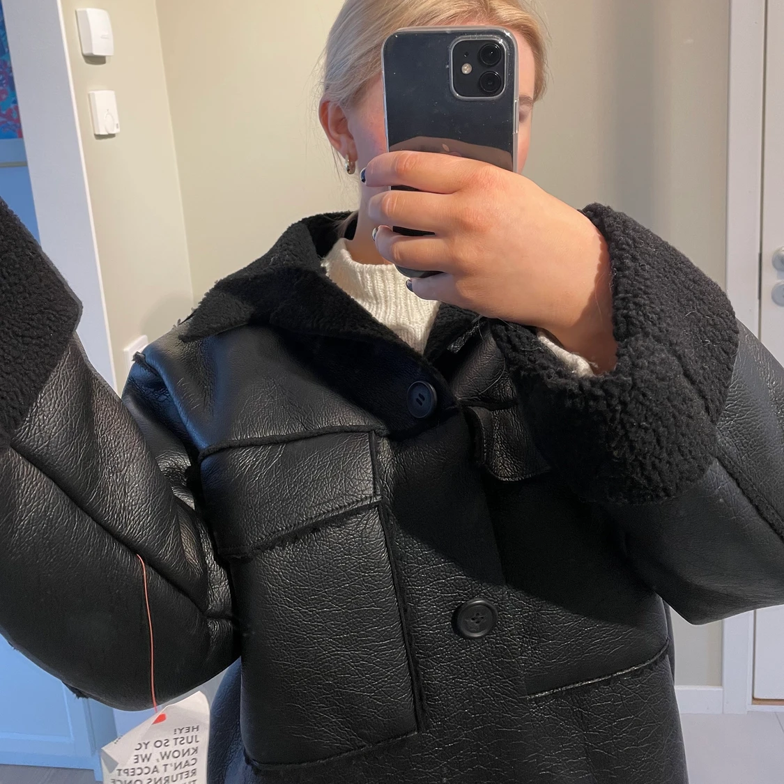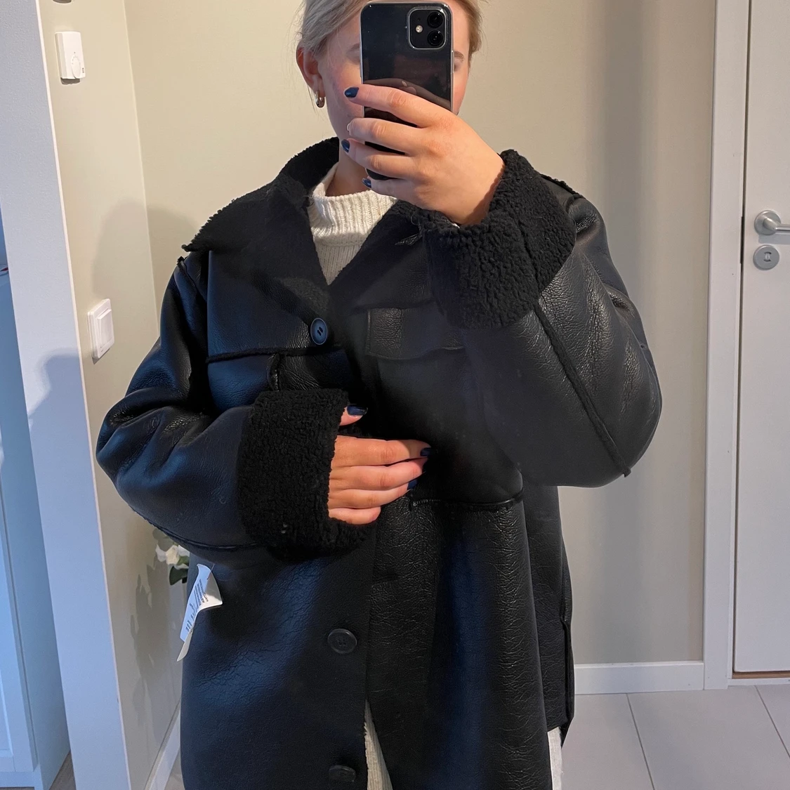 Skitsnygg oversized fejkläder jacka med foder inuti. Aldrig använd, prislapp kvar. Köpt på Asos för ca 849kr. Mitt pris 300kr 🌸 stl 38, är ca 1.62 cm lång.
