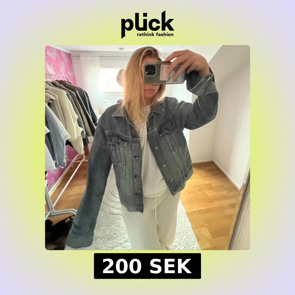 Snygg oversized jeansjacka i tvättad blå denim med klassisk krage och knappar framtill.