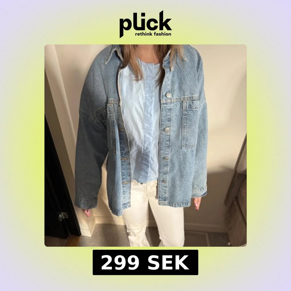 Säljer en oversized ljusblå jeansjacka med klassisk krage och tryckknappar framtill. Jackan har stora bröstfickor och en avslappnad passform som ger en cool och laidback vibe. Perfekt att slänga över en t-shirt eller hoodie.