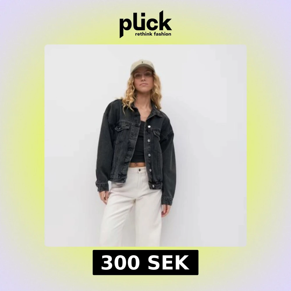Säljer en oversized svart jeansjacka med klassisk krage, bröstfickor med knappar och silvriga detaljer. Jackan har långa ärmar och en loose fit som ger en chill vibe. Perfekt att slänga över en hoodie eller crop top.