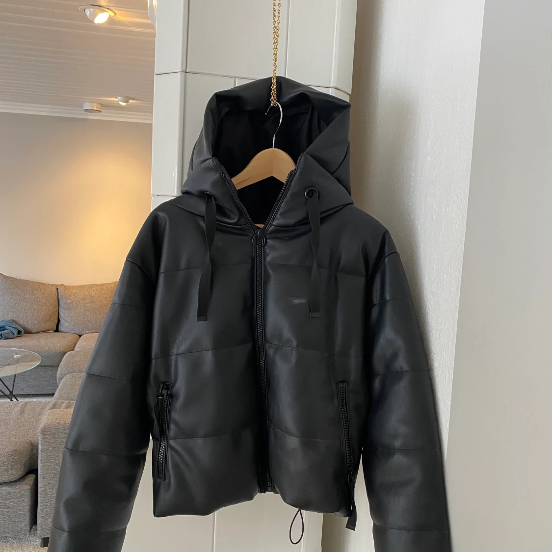 Säljer min pufferjacka i skinn som jag köpte från zara förra vintern. Den har en jätte stor luva och är i nyskick. Köparen står för frakten och betalning sker via swish! 💕