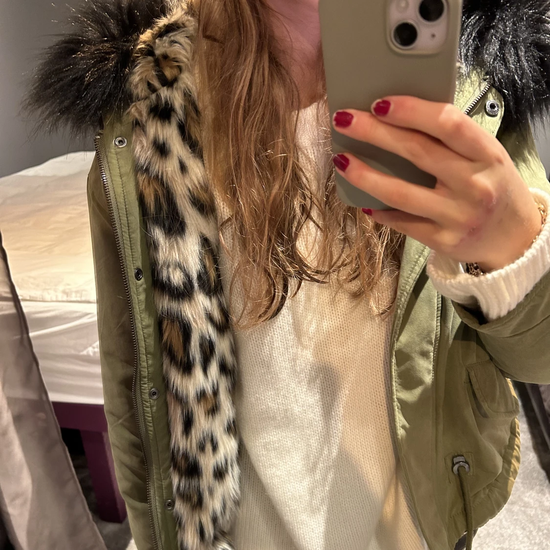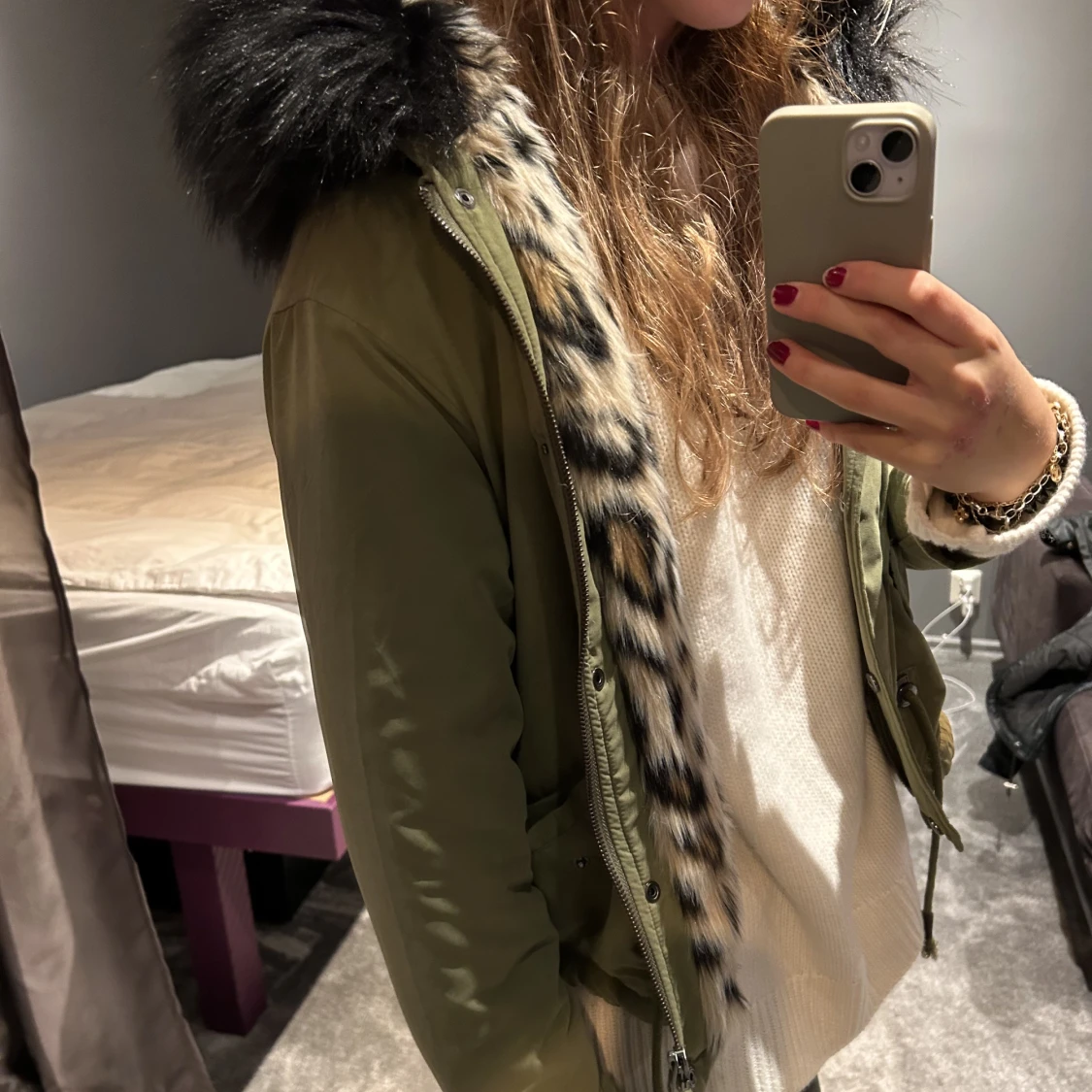 En snygg, helt oanvänd päls jacka perfekt för höst och vinter