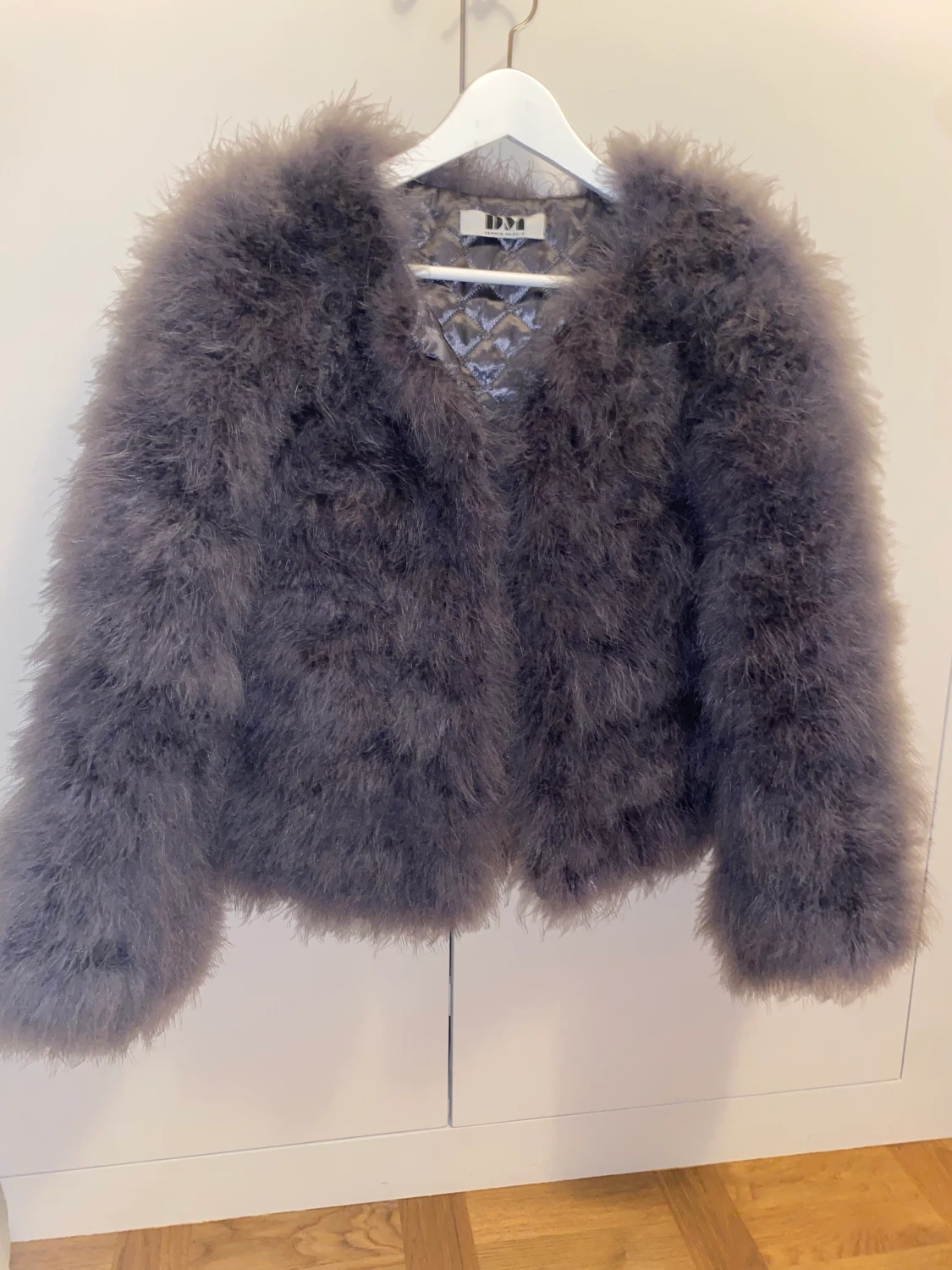 Fluffig jacka ifrån Dennis maglic! Använt fåtal gånger och är som ny! Skulle säga att den är grå / mörkblå. Går att stänga då den har väldigt små diskreta knappar som inte syns. Frakt är inte inräknat i priset