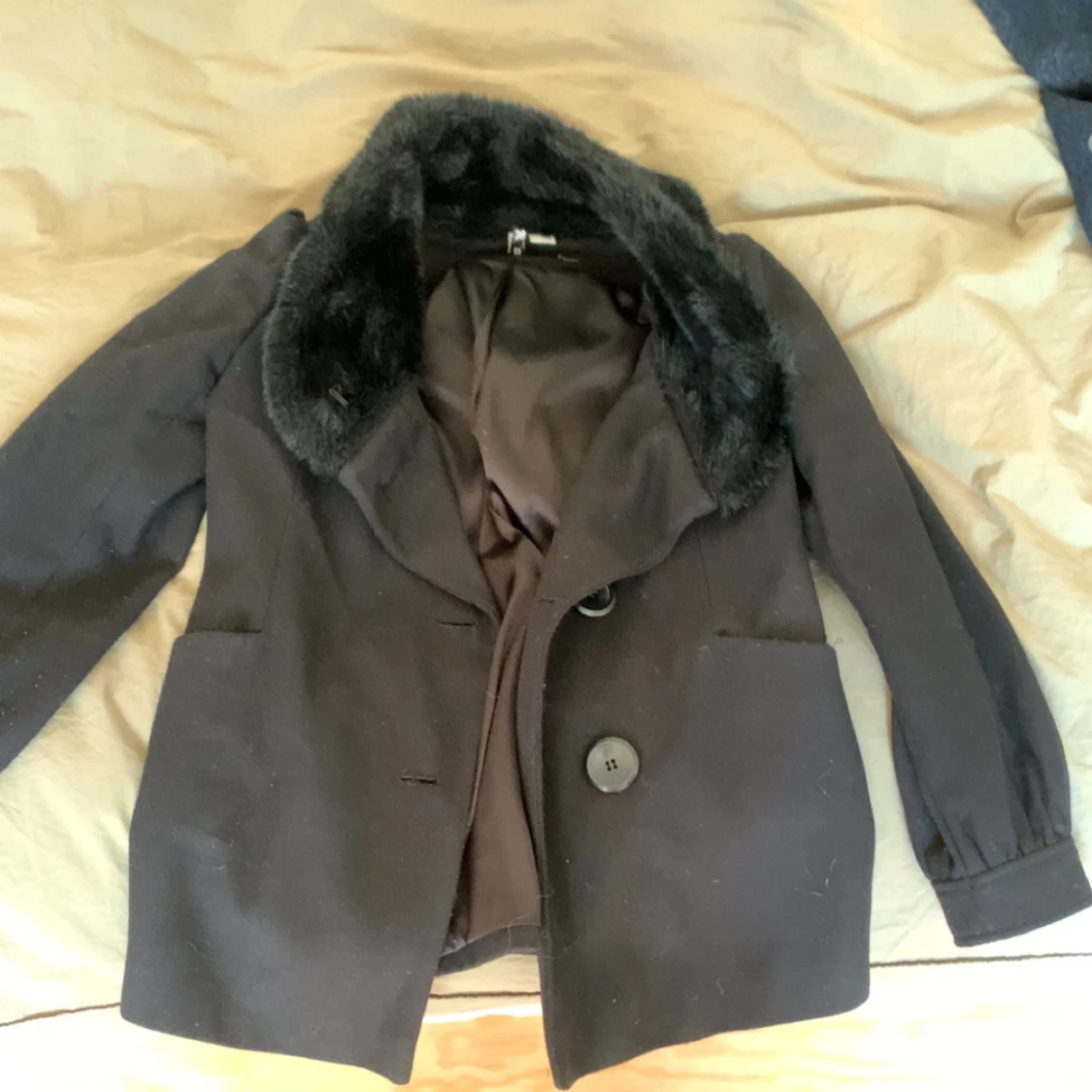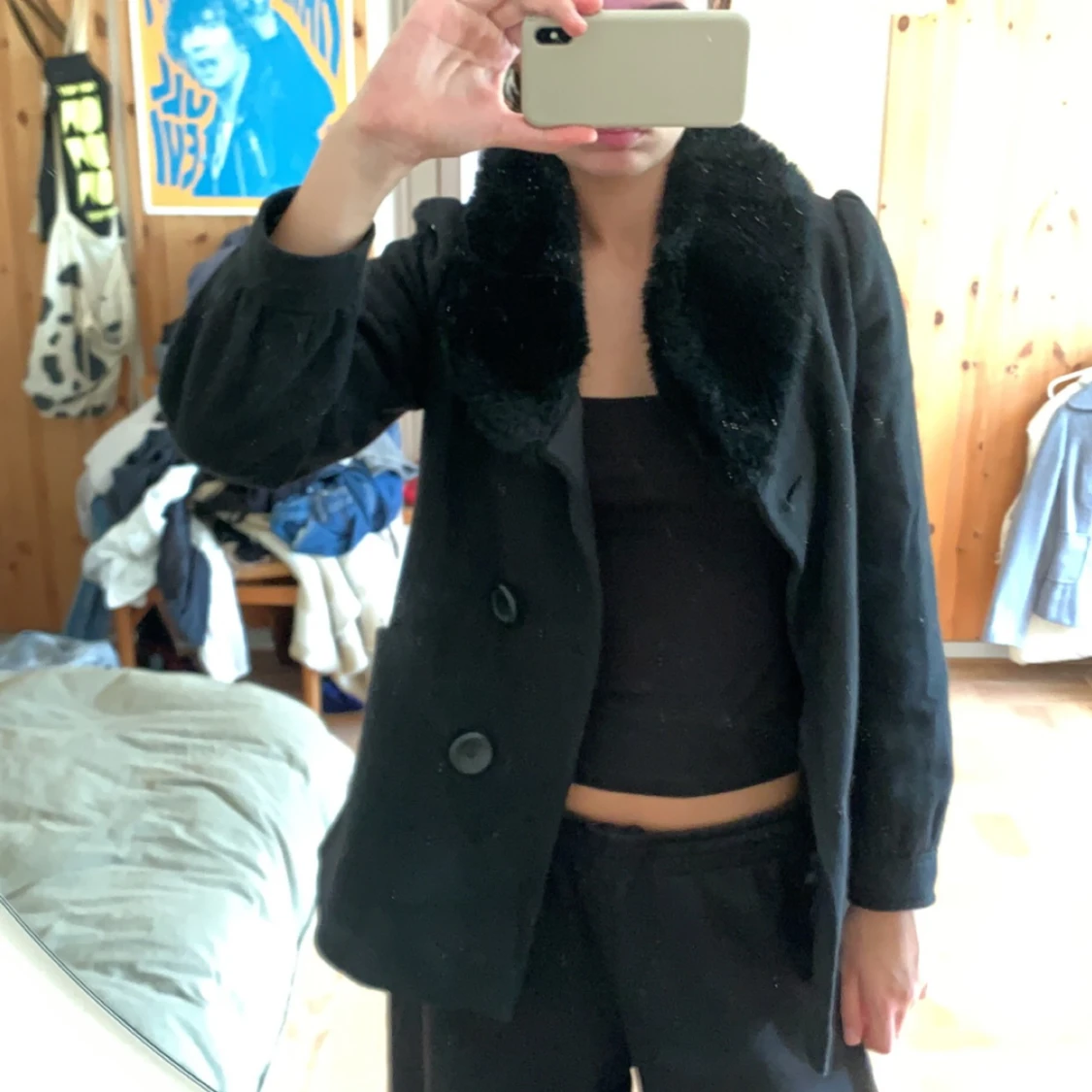 Svart jacka med päls runt kragen! Använd några gånger! 💕