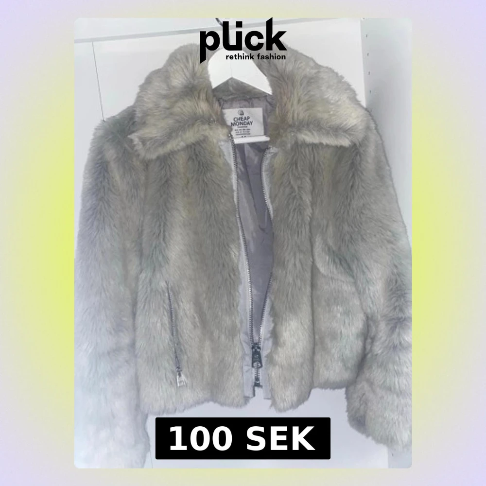 Säljer en fluffig och snygg beige pälsjacka från Cheap Monday i storlek M. Jackan har en bred krage, dragkedja framtill och två fickor med dragkedja. Perfekt för dig som vill ha en cool och varm look under höst och vinter.