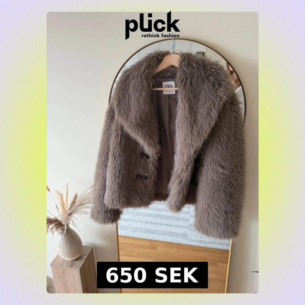 Faux pälsjacka från Zara i storlek M. Inga fel på den. Den har knäppen som går att stänga och som ger en fin detalj. 🩷
