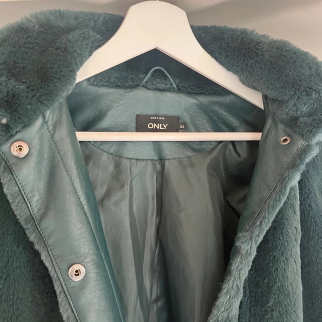 Superfin grön pälsjacka i storlek xs som tyvärr inte kommer till användning längre🌟 jackan är från ONLY och i bra skick