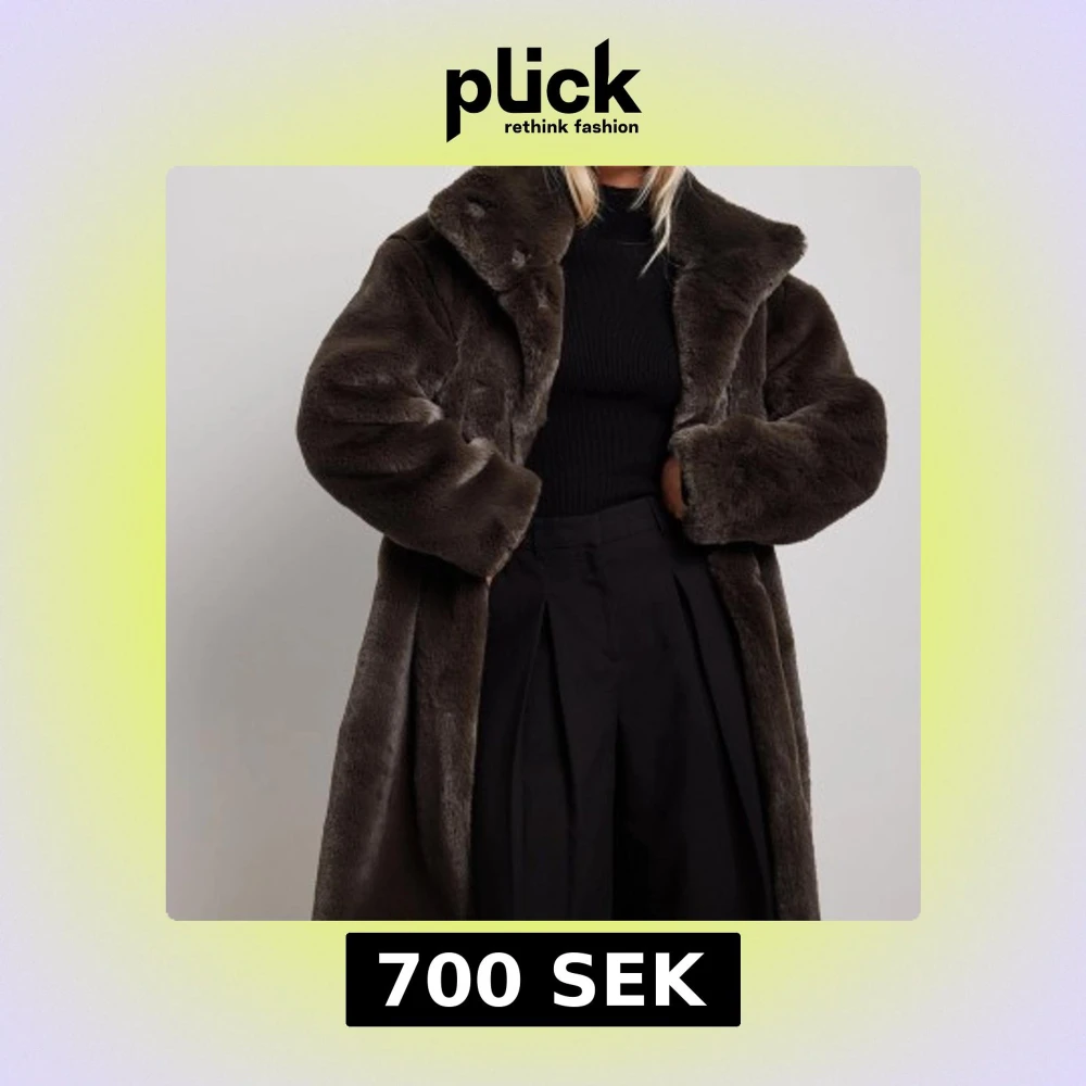 Säljer denna fluffiga och långa pälsjacka med bred krage. Jackan är helfärgad mörkbrun och är både varm och tjock. Använd ett fåtal gånger