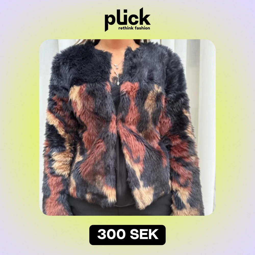 Flerfärgad pälsjacka