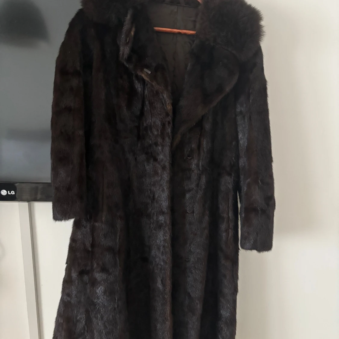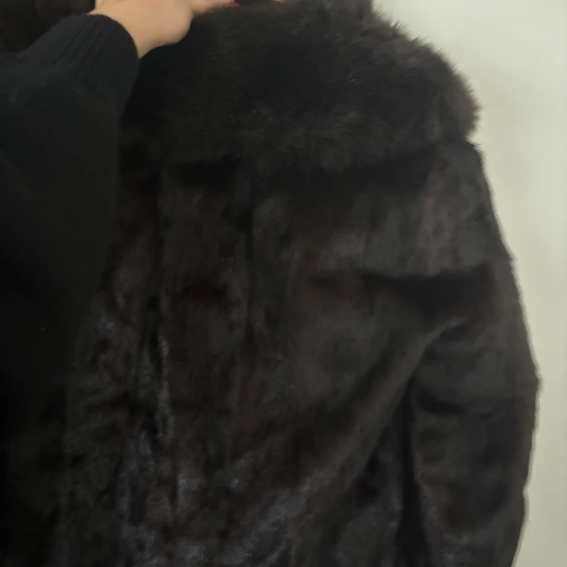 Säljer en elegant mörkbrun pälsjacka i mycket bra skick. Jackan har en klassisk långärmad design och är perfekt för kalla vinterdagar. Den är supermjuk och ger en lyxig känsla. Perfekt för att hålla sig varm och stilren under vintern! I mink, köpt på Vestiaire från Slovakien.