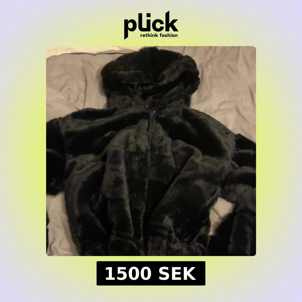 Mysig svart pälsjacka med huva och dragkedja framtill. Jackan har en fluffig känsla och är perfekt för kalla dagar. Snygg och enkel att matcha med olika outfits, passar dig som gillar en trendig och varm look. Jackan köptes i USA för cirka 3000kr, den är i bra skick