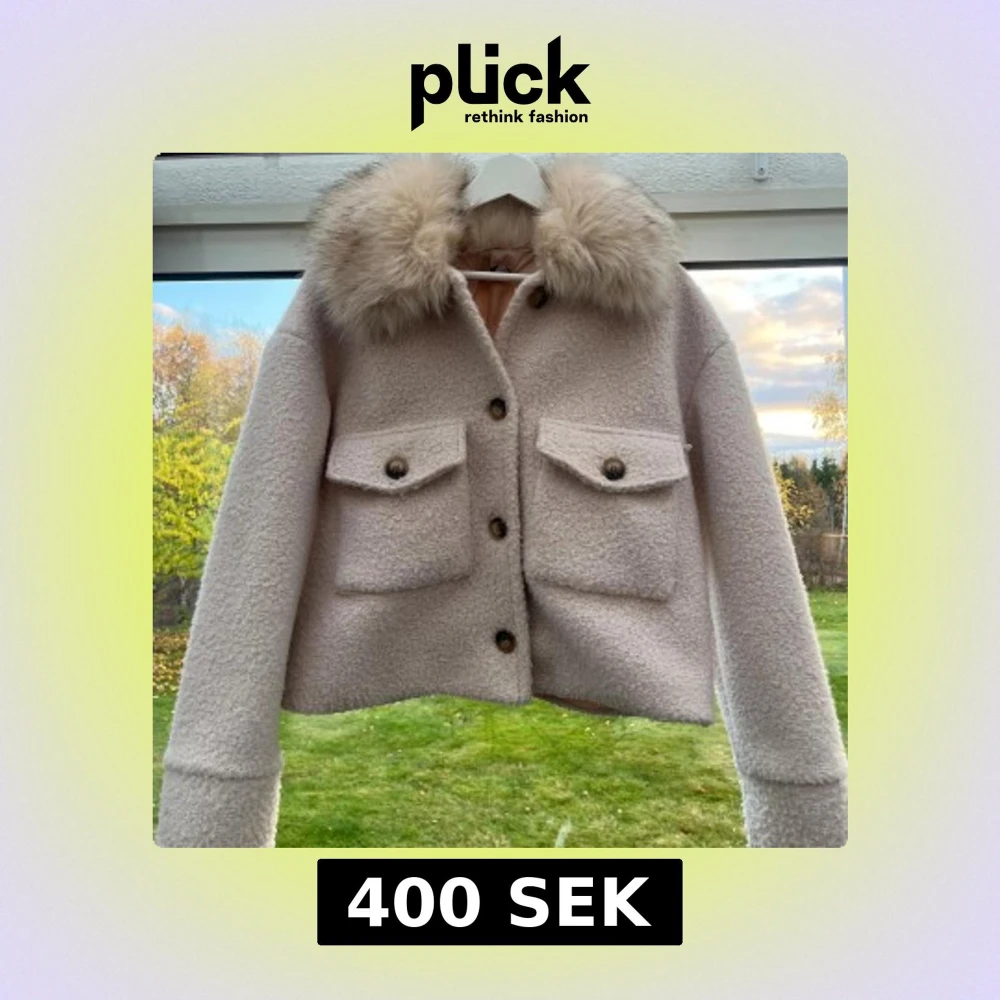 Superfin beige kappa med stor fluffig päls på kragen. Jackan har två stora fickor framtill samt knappar. Perfekt för höst och vinter när du vill vara både varm och snygg. Det är två små fläckar på jackan som är inringade på bilderna! Den svarta är på baksidan av armen och den andra är typ vid knapparna så det är inget som syns jätte tydligt☺️