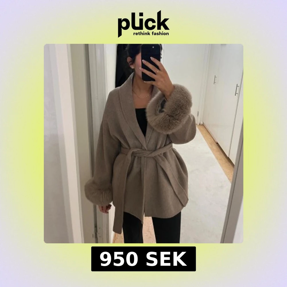 Beige kappa med päls vid händern. Fint skick. Storlek L men skulle säga den sitter onesize.