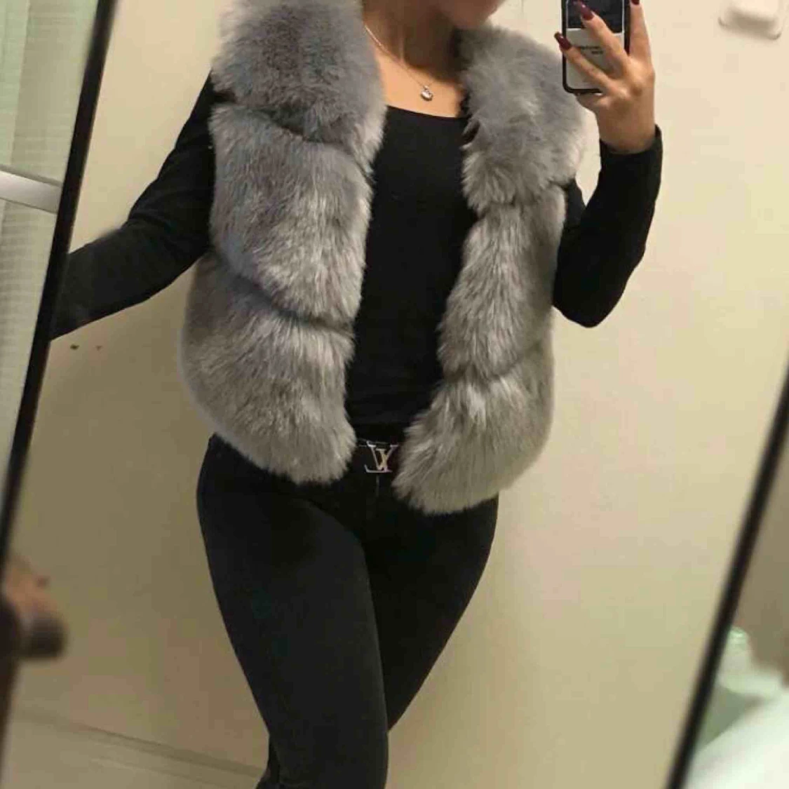 Grå ”päls”väst , helt ny!! Aldrig använd.
