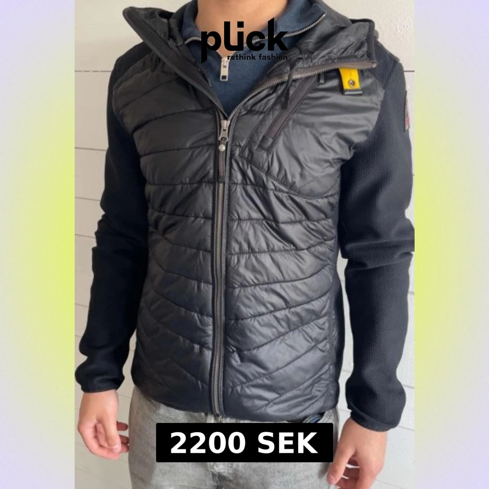 Svart pufferjacka från Parajumpers med huva och hel dragkedja framtill. Jackan har quiltad front och rygg i glansigt material, samt släta, stickade ärmar. Detaljer som gul knapp vid halsen och logopatch på axeln. Perfekt för kyliga dagar.