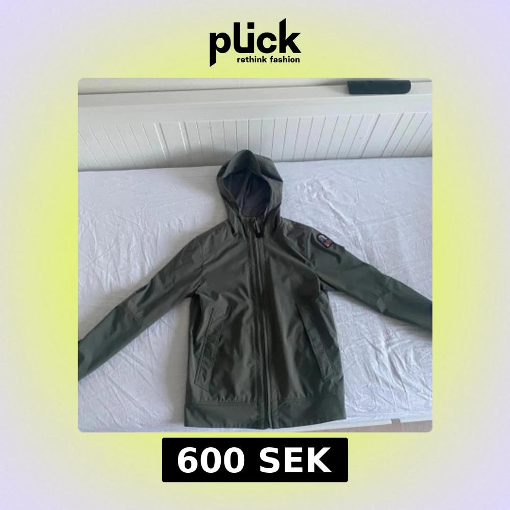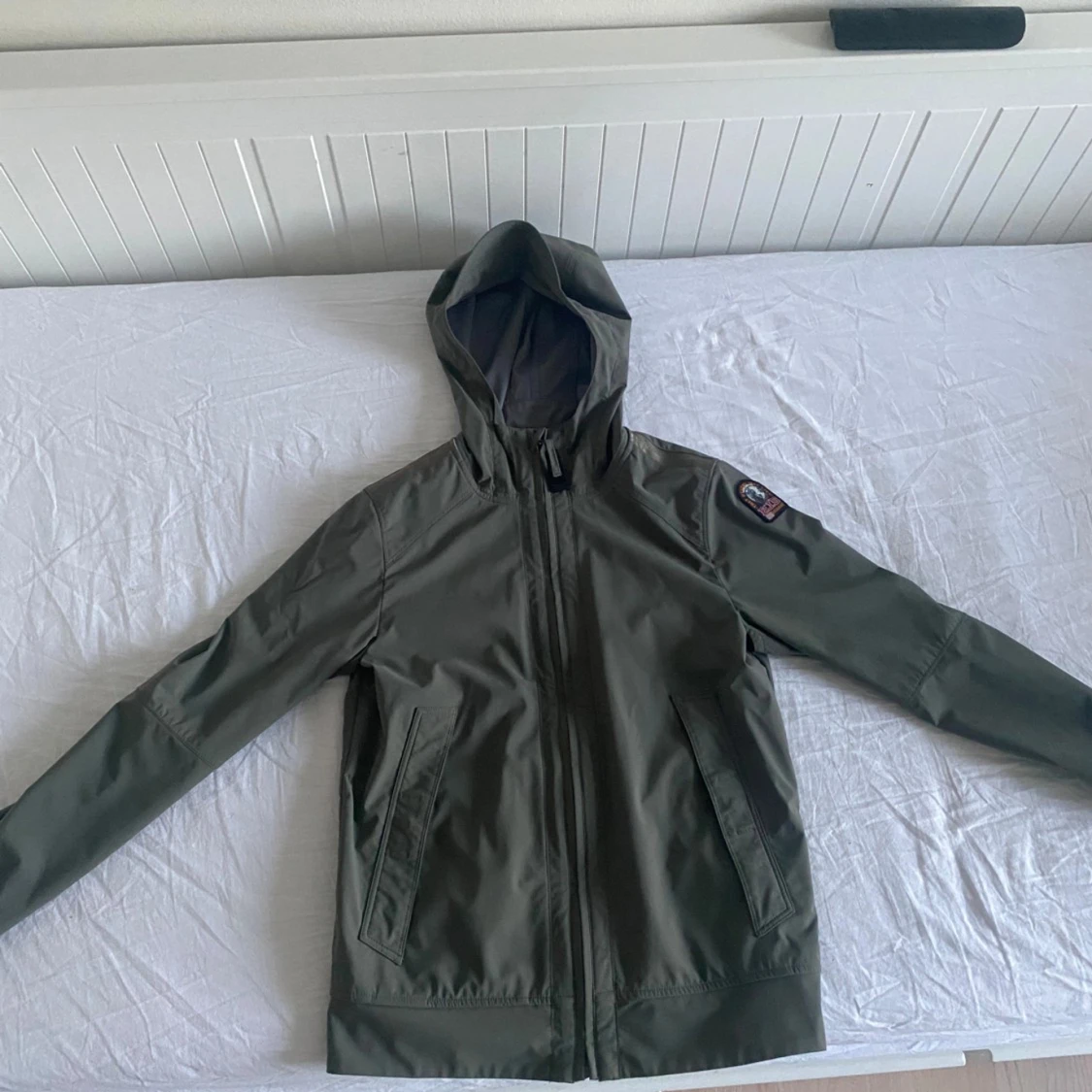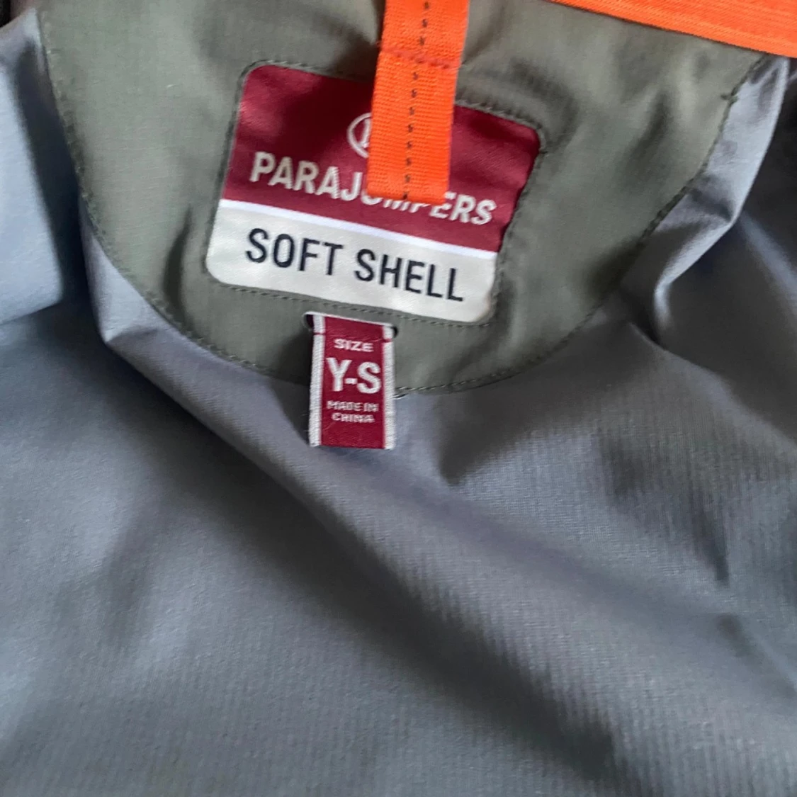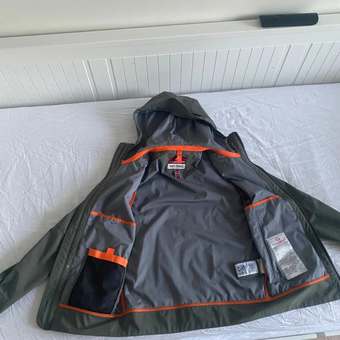 Säljer en olivgrön softshelljacka från Parajumpers med huva och dragkedja. Jackan har två snedställda fickor framtill och detaljer i orange på insidan. Perfekt för dig som vill ha en stilren och funktionell jacka.