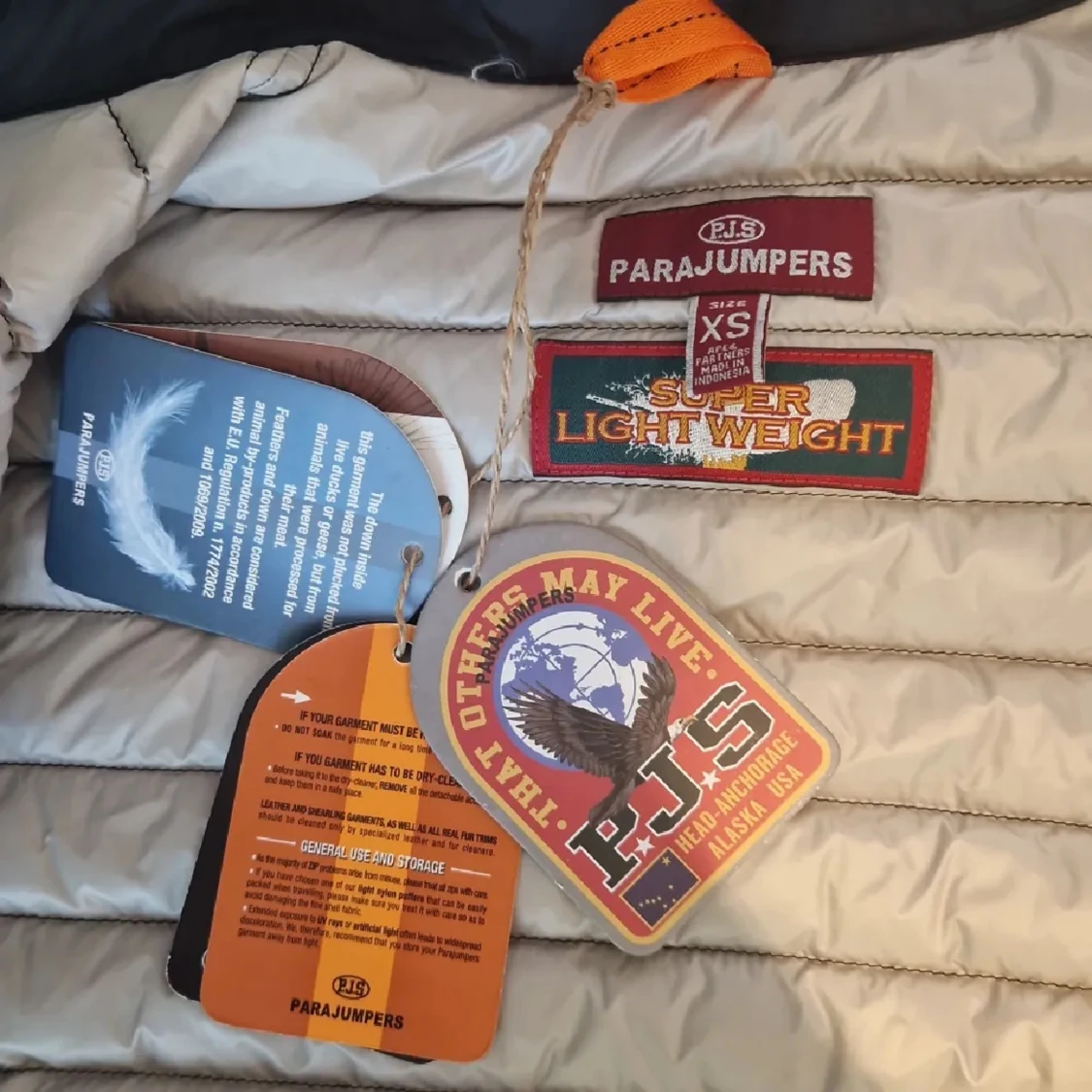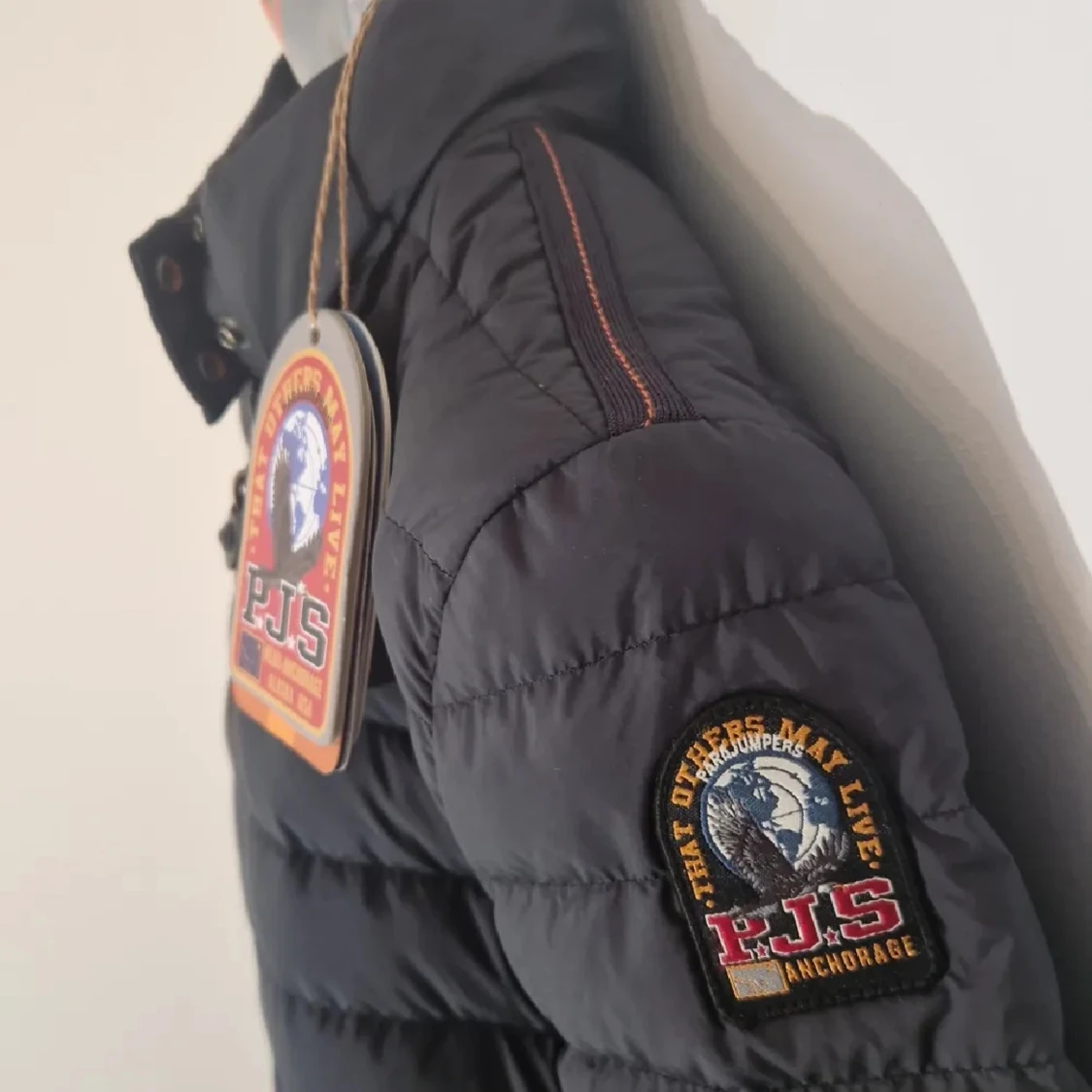 Säljer en svart dunjacka från Parajumpers i superlätt material. Jackan har en dragkedja framtill och en hög krage. Den är dekorerad med ett märke på ärmen och har en quiltad design. Perfekt för kyliga dagar!