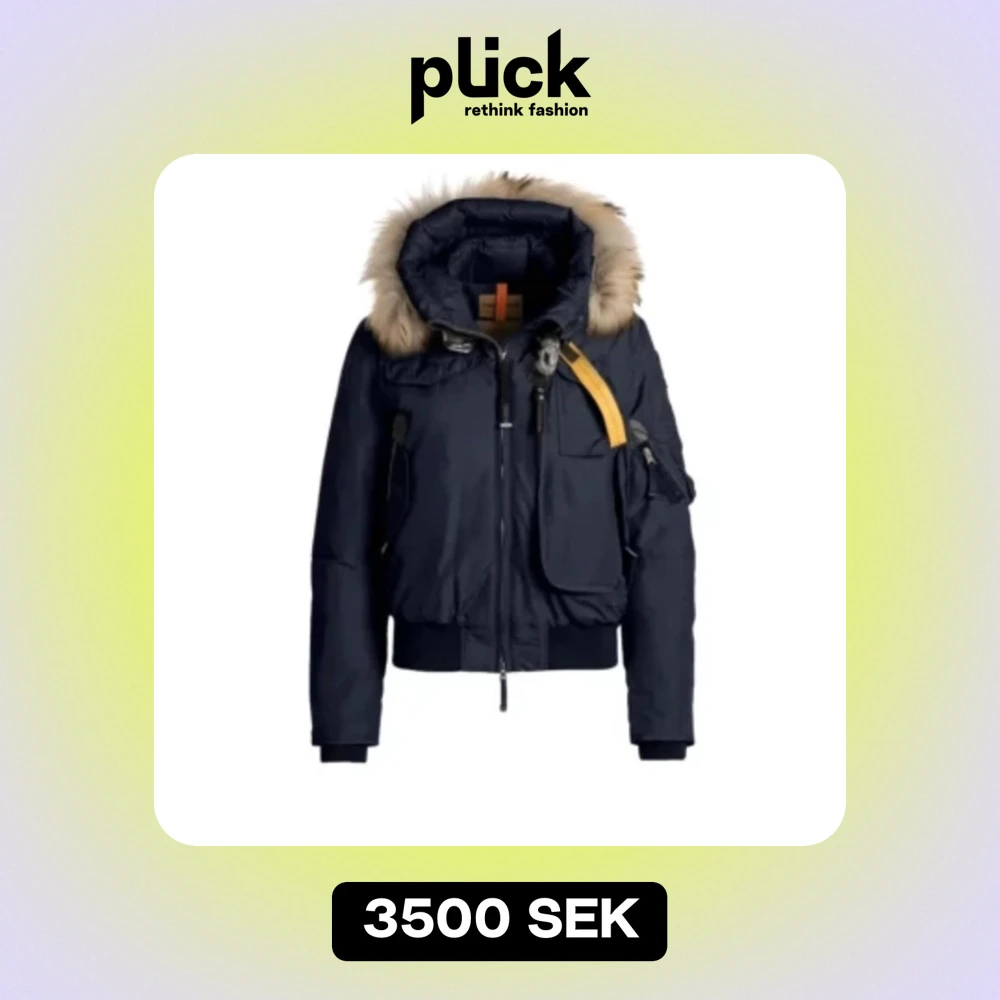 En fin parajumper jacka, en kort modell (bomberjacka) med pälskrage, storlek Large Passar storlek 36-40 Se länken: https://www.miinto.se/p-marinbla-bomberjacka-for-kvinnor-4bcf2622-ecc0-464b-92b6-03e49495b2fc?gad_source=1&gbraid=0AAAAADIxW6KLeA6