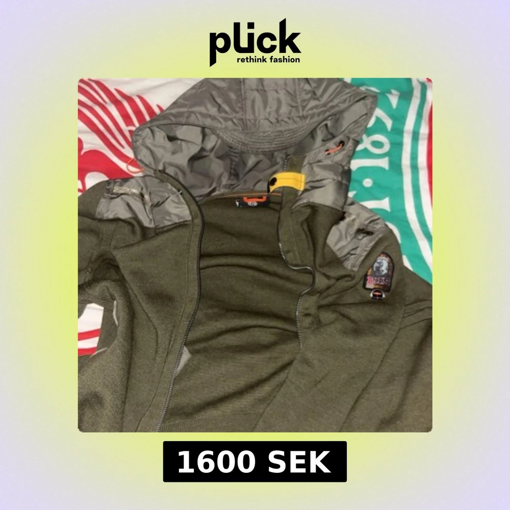 Säljer en olivgrön jacka från Parajumpers med grå vadderad huva och detaljer. Jackan har dragkedja och en gul rem vid halsen. Märkespatch på ärmen. Perfekt för dig som vill ha en snygg och funktionell jacka.
