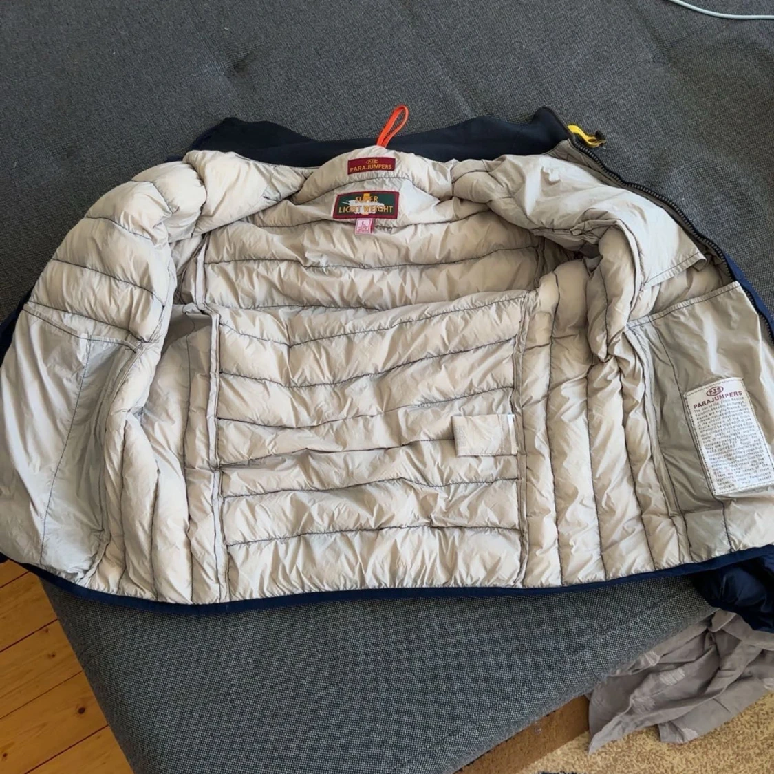 Säljer en blå dunjacka från Parajumpers i storlek L. Jackan är superlätt, har quiltad design, dragkedja framtill och flera fickor. Insidan är ljusbeige och jackan har en snygg patch på ärmen. Perfekt för kyliga dagar och riktigt stilren. Priset kan diskuteras