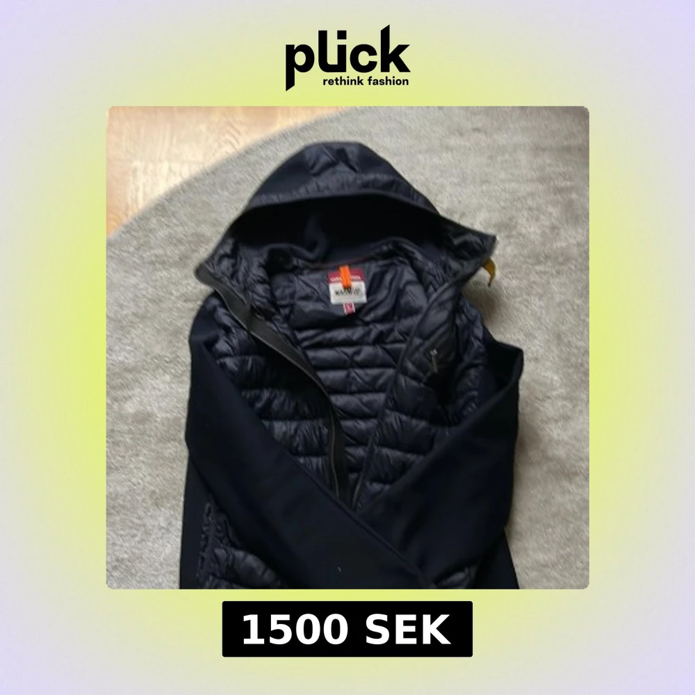 Svart pufferjacka från Parajumpers i storlek L. Jackan har huva, quiltad insida och dragkedja framtill. Snygga orangea detaljer och klassisk PJS-logga på ärmen. Perfekt för kalla dagar och har en modern, sportig look.