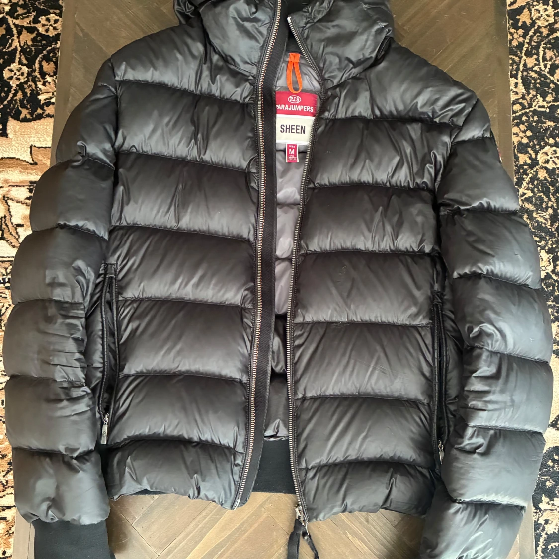 Säljer en svart pufferjacka från Parajumpers Sheen i storlek M. Jackan har huva, dragkedja framtill och två sidofickor med dragkedja. Den är vadderad och har en klassisk quiltad look som håller dig varm under kalla dagar.