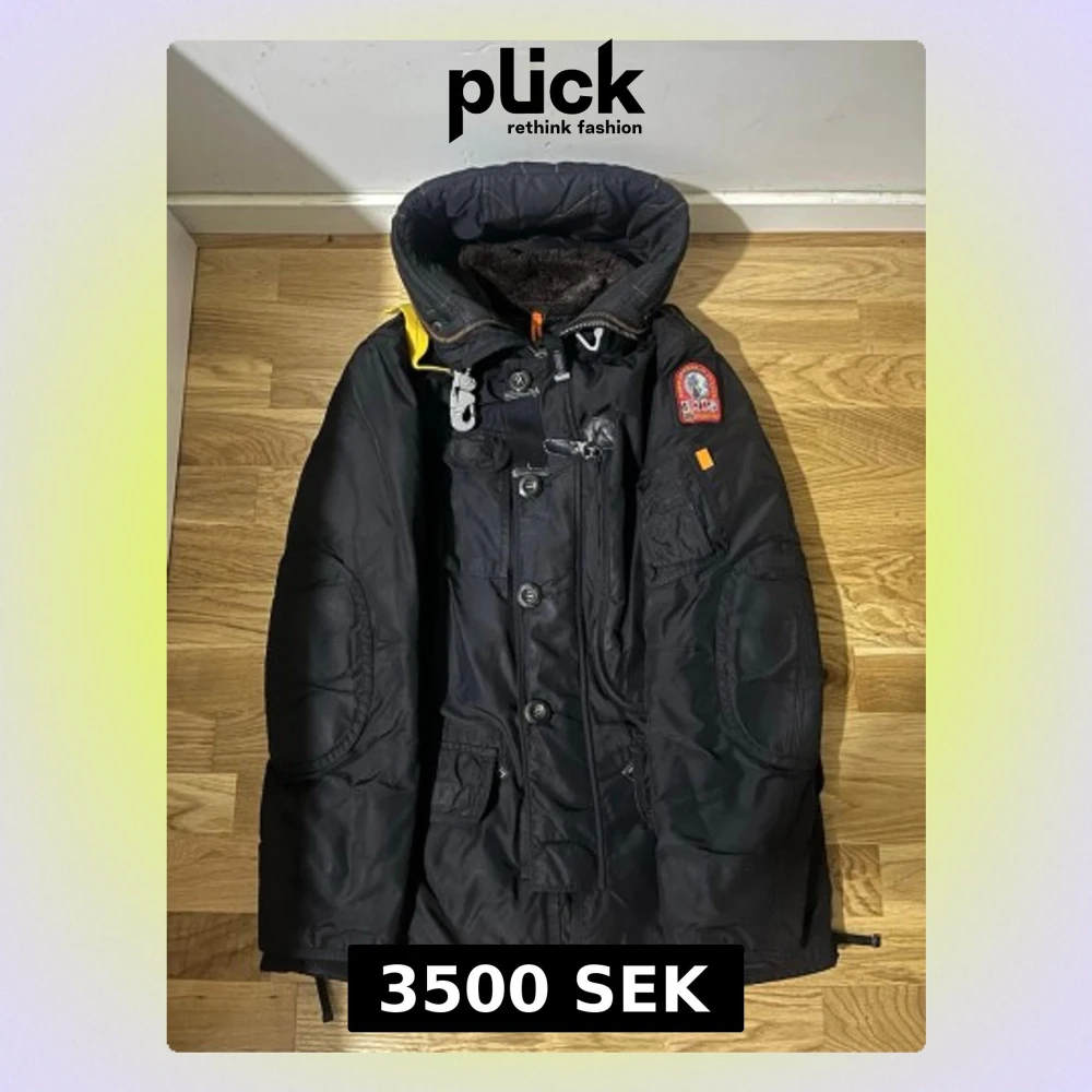 Svart parkajacka från Parajumpers med stor huva, gul detalj på axeln och flera fickor. Jackan har både dragkedja och knappar framtill, quiltad insida och mjuk fuskpäls vid kragen. Perfekt för kalla dagar och har coola detaljer som patch på ärmen.helt äkta