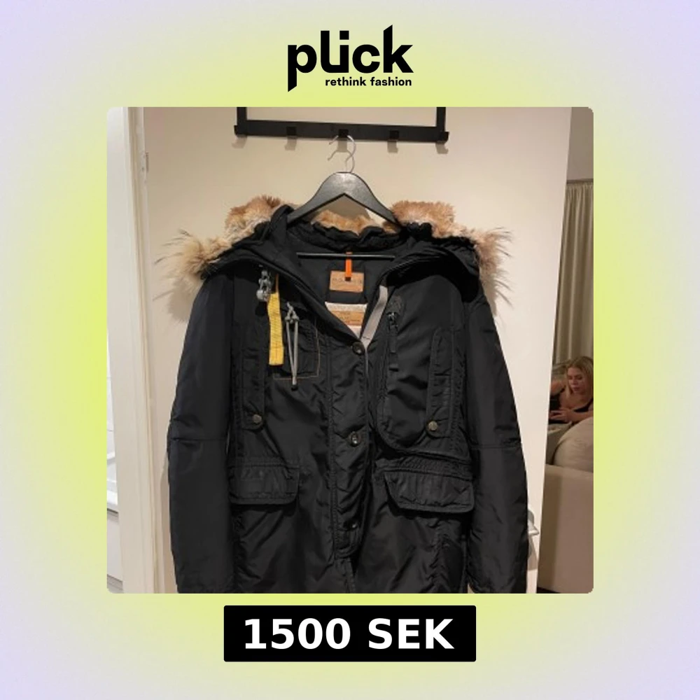 Svart parkajacka från Parajumpers med fluffig beige päls på huvan, coola gula detaljer och flera fickor framtill. Jackan har dragkedja som är sönder men går enkelt att laga är ena dragtappen som är borta, knappar och snörning, samt ribbade muddar vid ärmslut. Perfekt för dig som vill ha en varm och snygg vinterstil.
