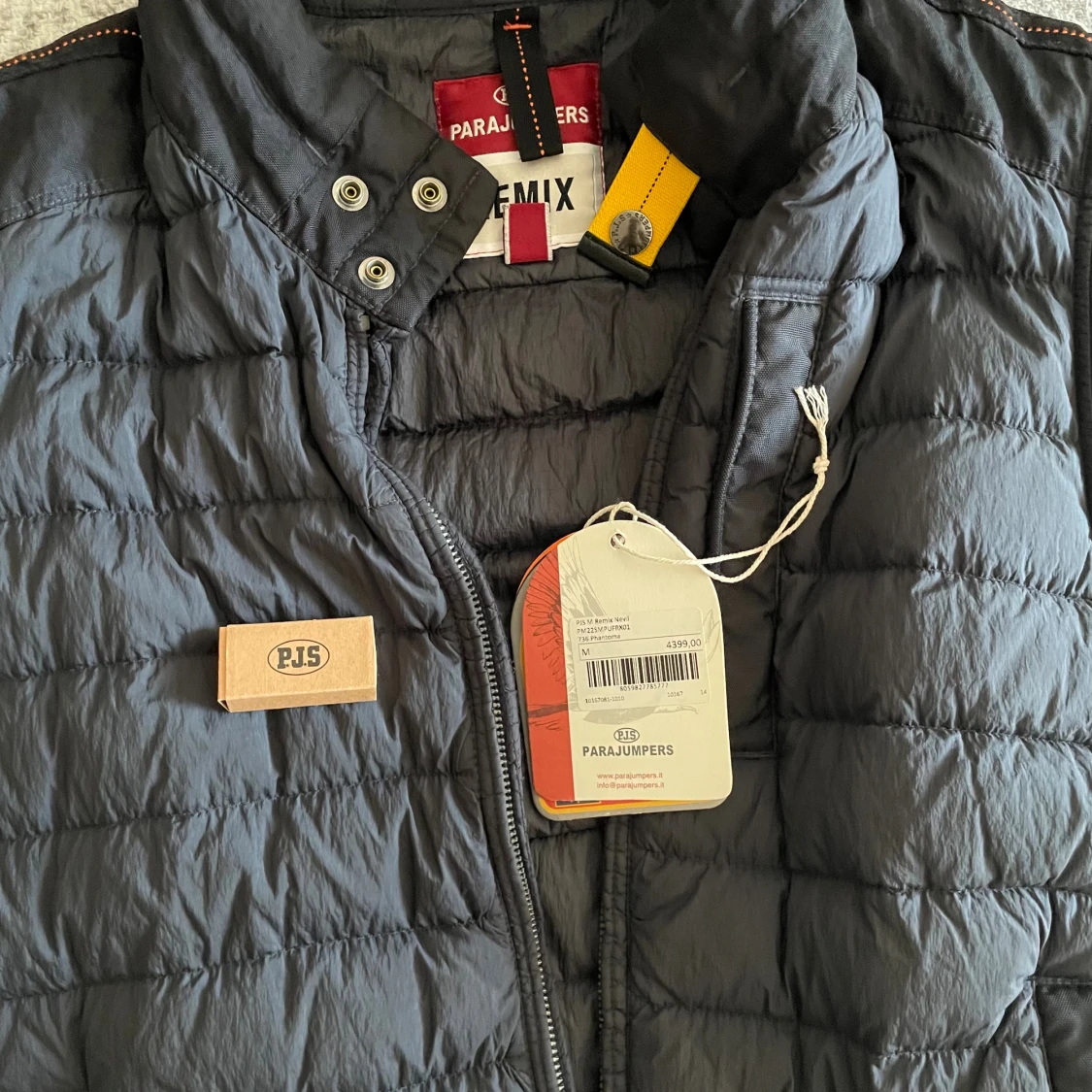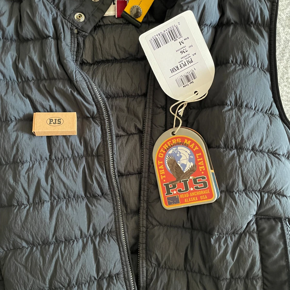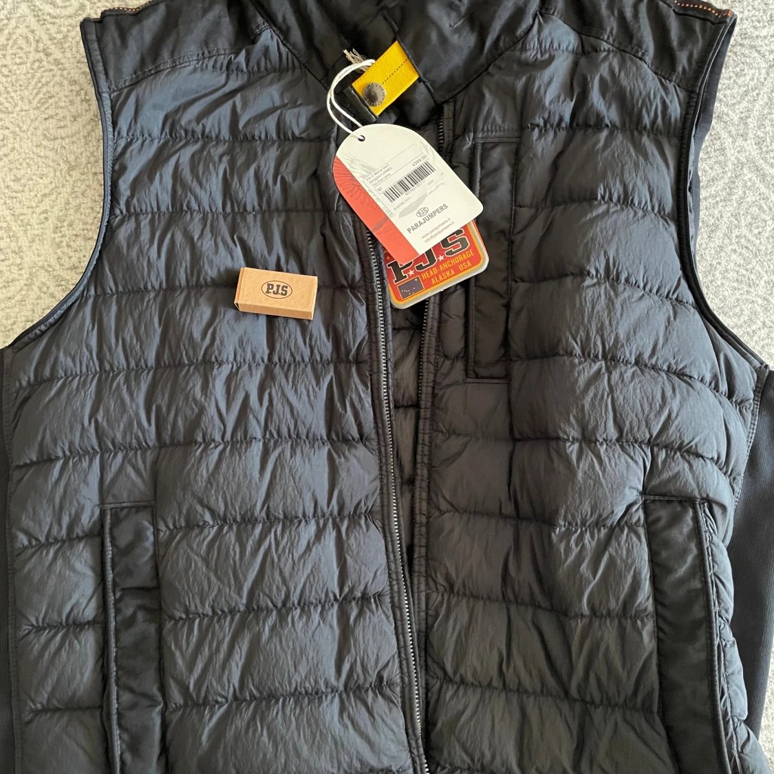 Snygg svart dunväst från Parajumpers med quiltad design och dragkedja framtill. Västen har en gul detalj vid kragen och diskret PJS-logga på bröstet. Perfekt för lager-på-lager och har praktiska fickor på sidorna.