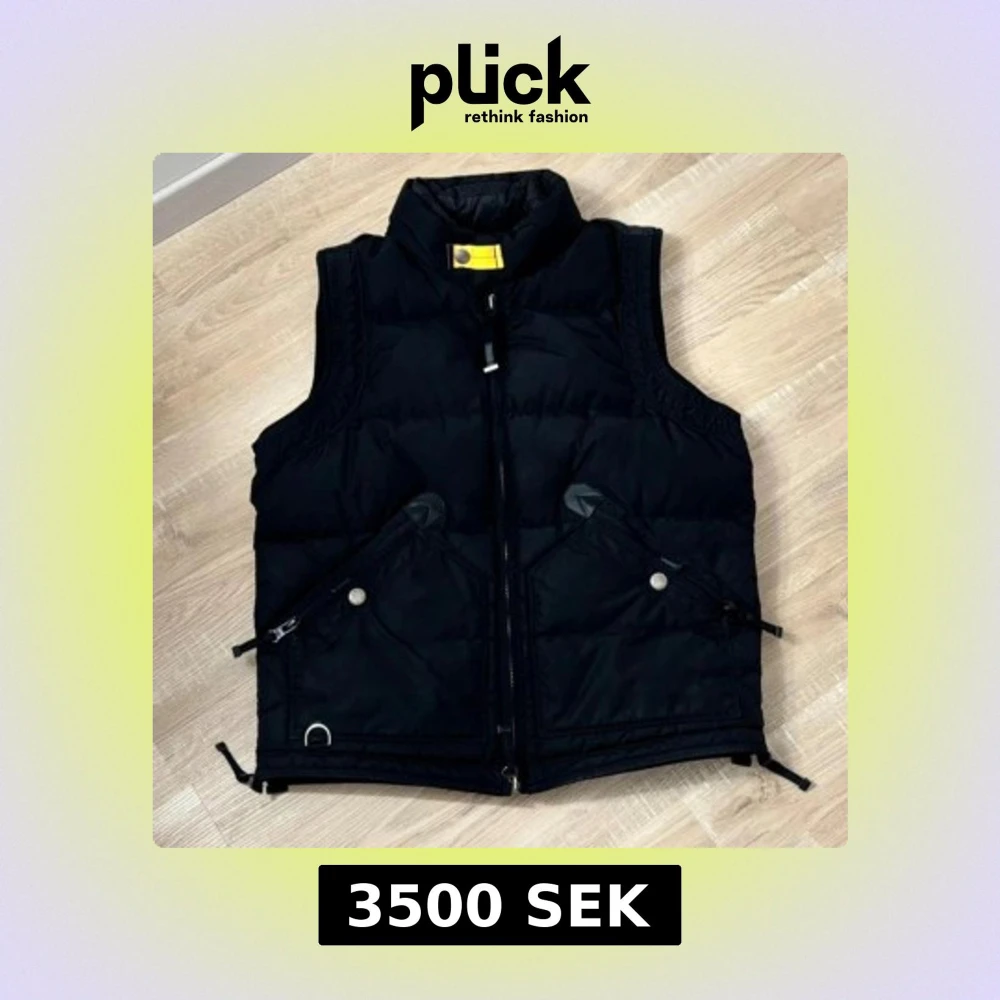 Snygg svart dunväst från Parajumpers med hög krage, två stora fickor med dragkedja och tryckknapp samt coola detaljer som logopatch på ryggen och orange inslag. Perfekt för lager-på-lager och streetstyle. Äkta!!!