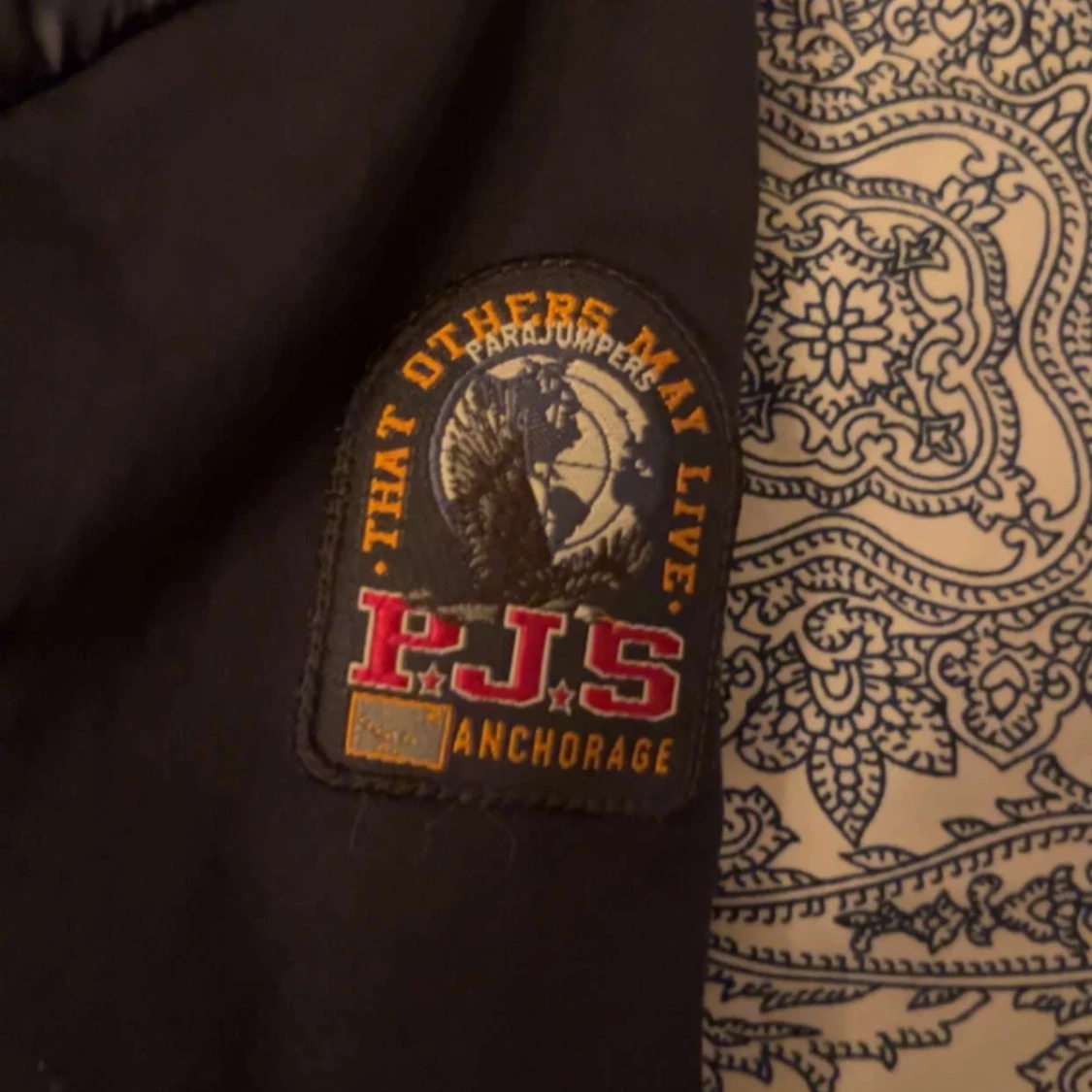 Snygg mörkblå jacka från Parajumpers med quiltad design och dragkedja framtill. Jackan har en hög krage och ett märke på ärmen. Perfekt för kyligare dagar. Nypris 3000