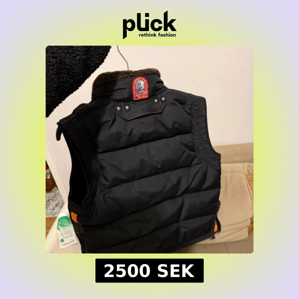 Snygg svart dunväst från Parajumpers med fluffig brun krage i fuskpäls, orange detaljer på sidorna och flera praktiska fickor med dragkedja och knappar. Västen har quiltad design och grov dragkedja framtill. Perfekt för kalla dagar när du vill se cool ut.