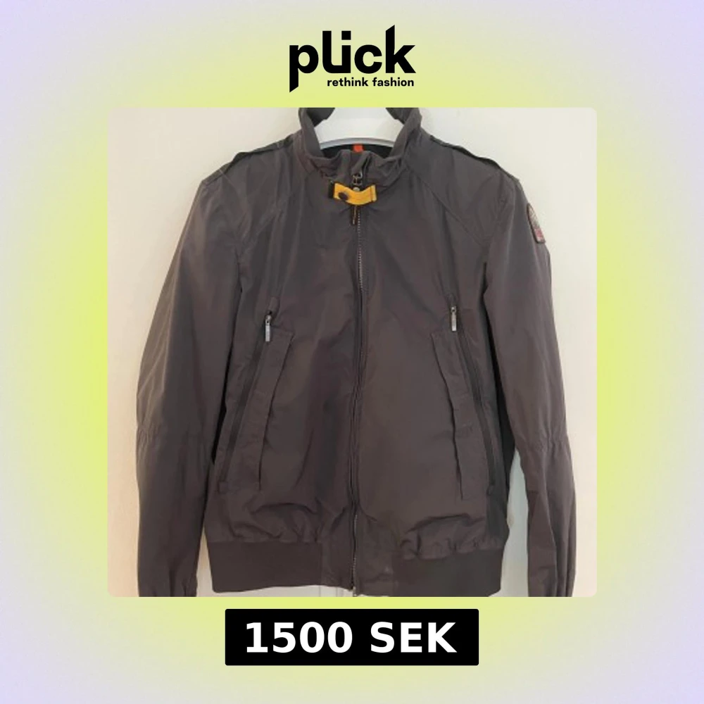 Snygg svart vindjacka från Parajumpers med klassisk gul detalj vid kragen och dragkedja framtill. Jackan har två snedställda fickor med dragkedja, ribbade muddar och hög krage. Endast använd 1-2 gånger.