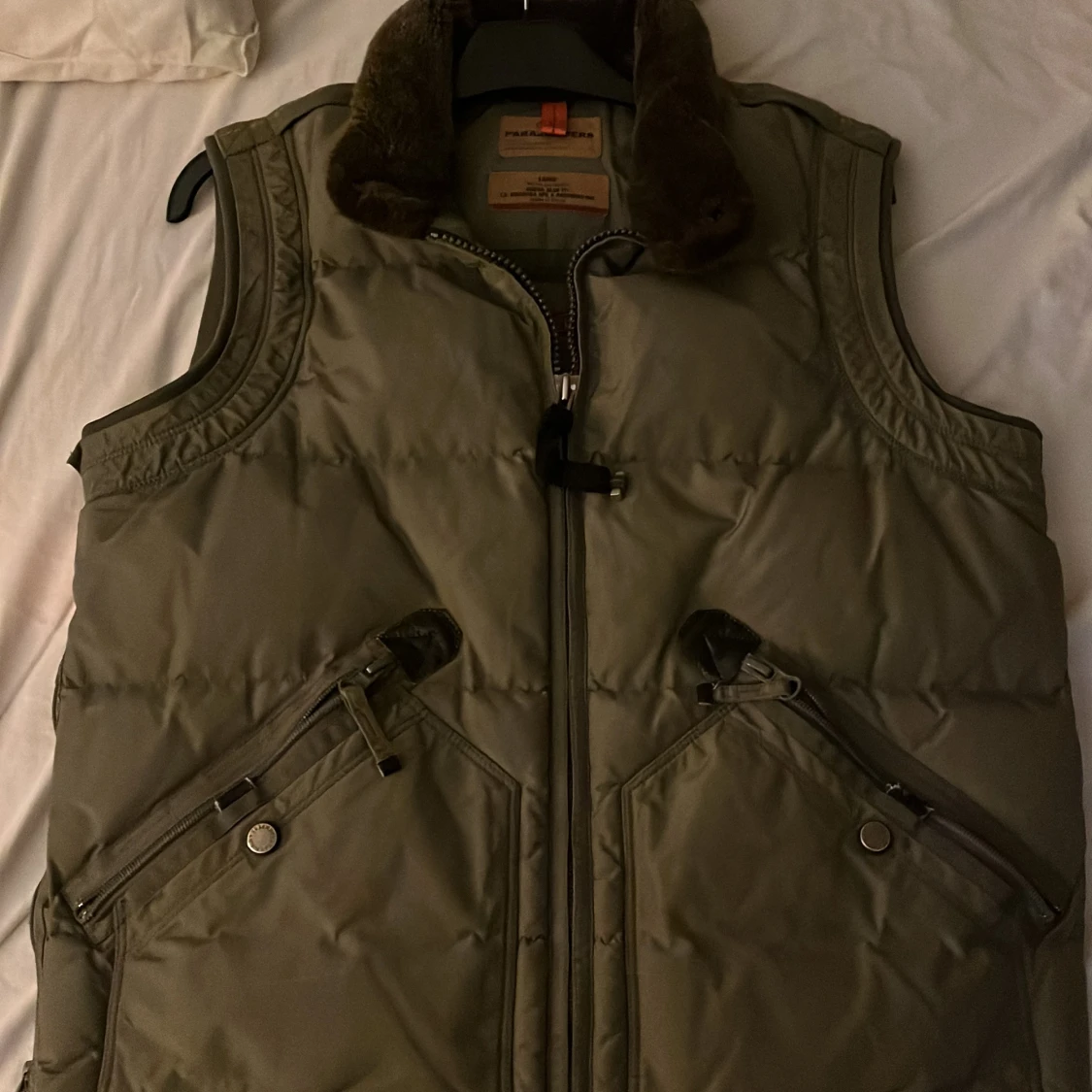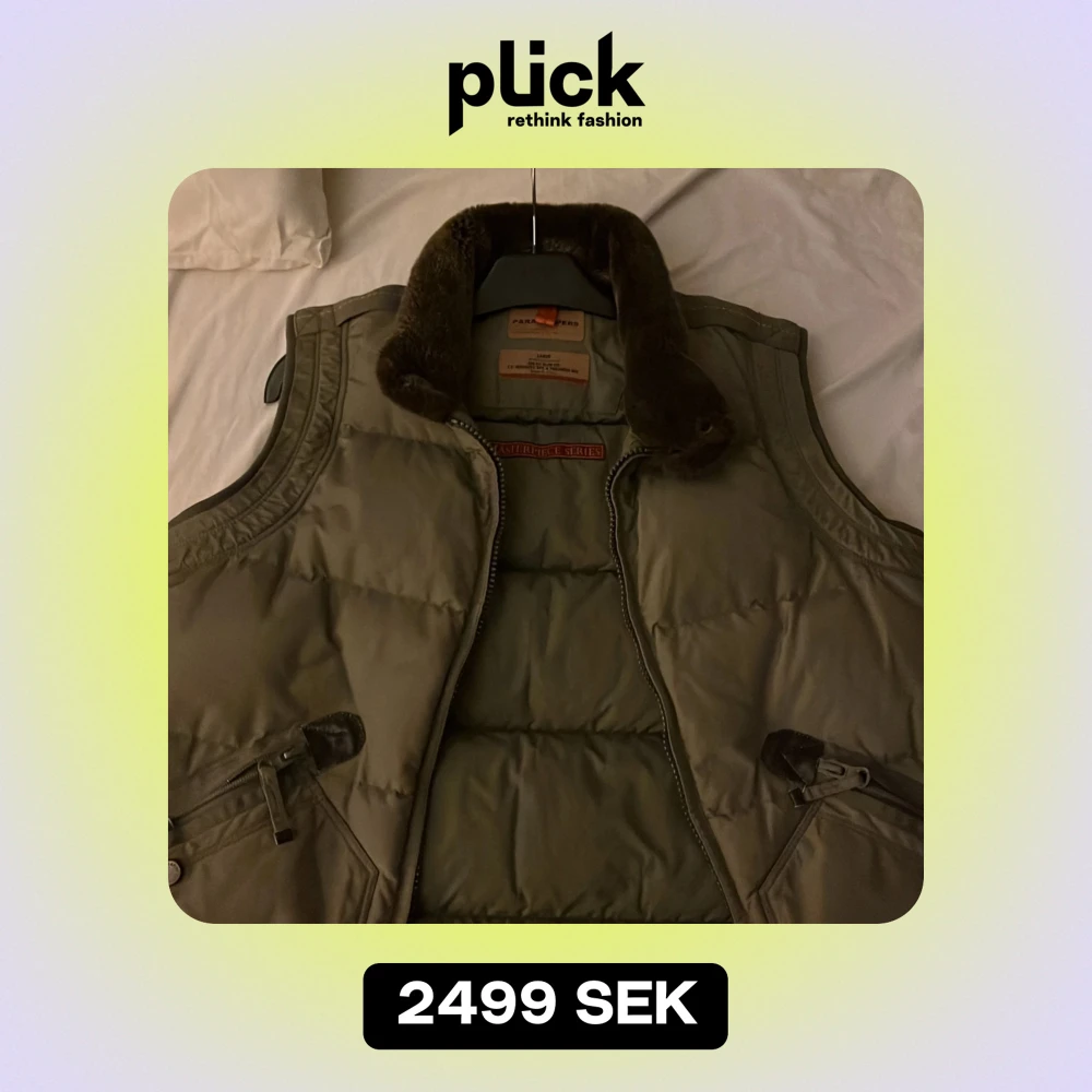 Säljer en olivgrön dunväst från Parajumpers Masterpiece Series. Västen har en mysig pälskrage och praktiska dragkedjefickor. Perfekt för vintern med sin slim fit design. Passar både till vardags och lite mer äventyrliga aktiviteter. Passar S/M. PRISET GÅR ATT DISKUTERA!